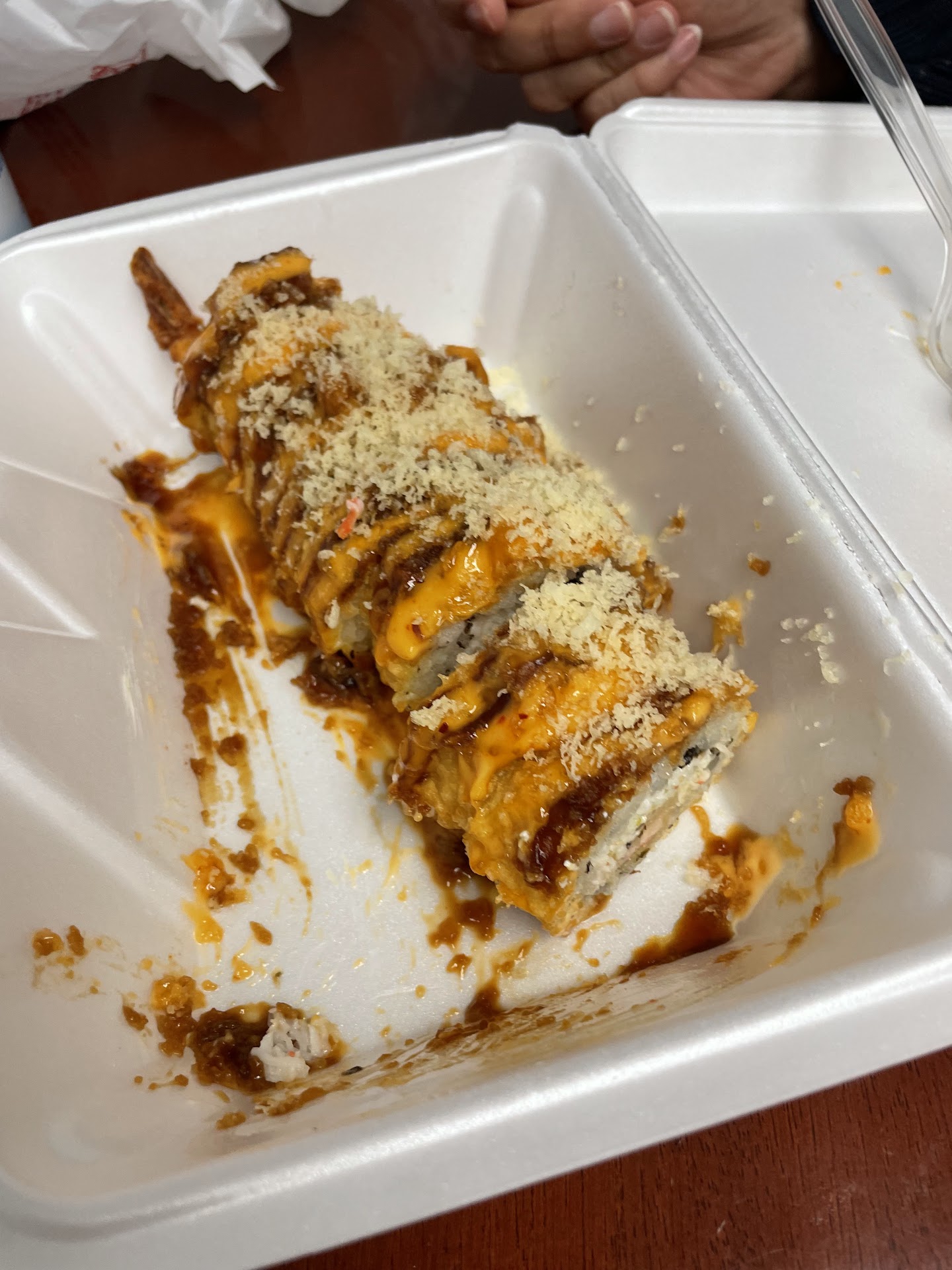 Ps I saw the guy making the shushi and picking up the flakes with bare hands. I pray that was not my food. Someone may get...