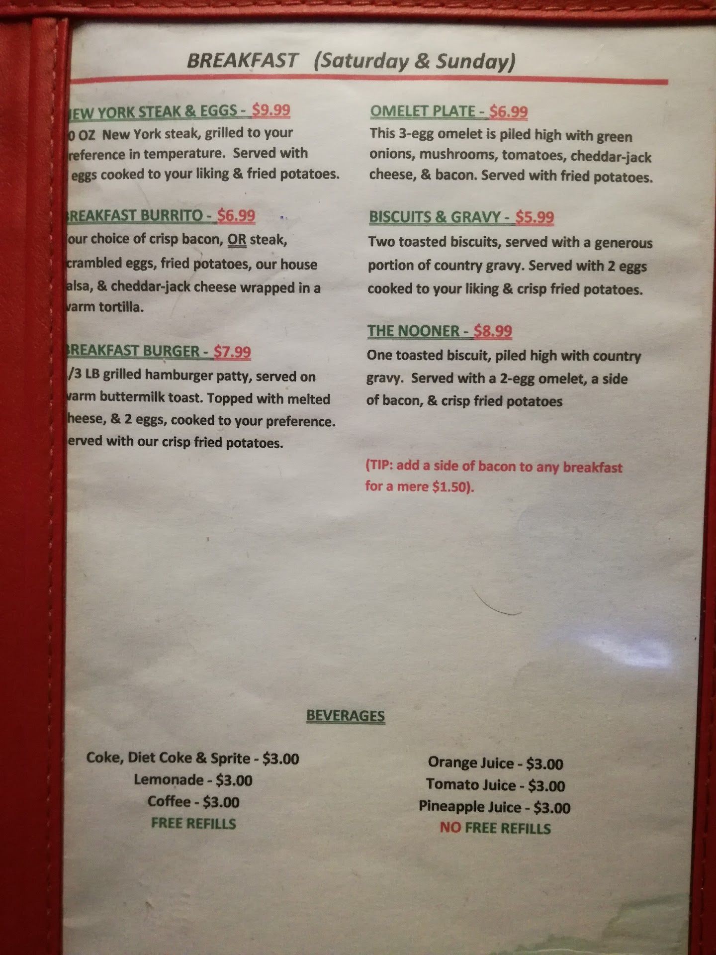 Read moreFood was surprisingly good for the price. One beer and a rib eye steak for $16. Waiter was nice and attentive. Cool atmosphere, they were playing good music, wasn't to crowded at 6 pm on a Thursday. Only hiccup was their Credit card machine, 2 of my friends had 3 of their cards declined, also they don't take American Express. We worked it out since I had cash, but if you come on a date and your card gets declined it can be embarrassing, especially since your account has funds. The cards worked fine on my square reader, that's how they...