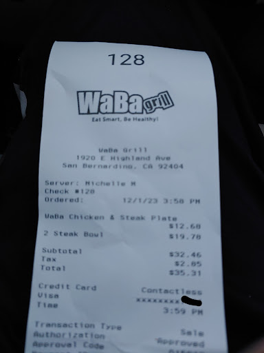 Read moreUnfortunately, this will be the last time I visit this location of Waba grill. I ordered the salmon bowl and asked to pay the one dollar extra for some vegetables. From my understanding, the salmon bowl alone is supposed to be a bowl, full of rice and choice of meat, in my case salmon on top. If I pay one dollar extra for vegetables, the vegetables should also be on top of the rice.