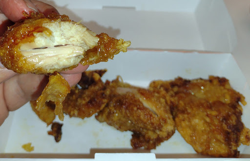 Read moreOrder through app, app made me wait 20 mins, then after getting to thr drive through had to wait 10 more. Food was cold and wrong, crispy chicken was this glob of nasty bottom of the tub meat barely fried long enough to even call it done. Beef was guyodon not ribeye, had no flavor. and the tinniest drizzling of sauce to share between it and the "grilled" chicken. This chicken came right out of the freezer was was microwaved. Even with requesting side sauce I got none. despite ordering one of each. Mind you this is the double xl plate with side crispy chicken. An finally no napkins and no chopsticks/fork. So I am now 15 miles away,with no sauce No chopsticks and this undercooked, 2nd rate meal I could have ordered for half the price at any...