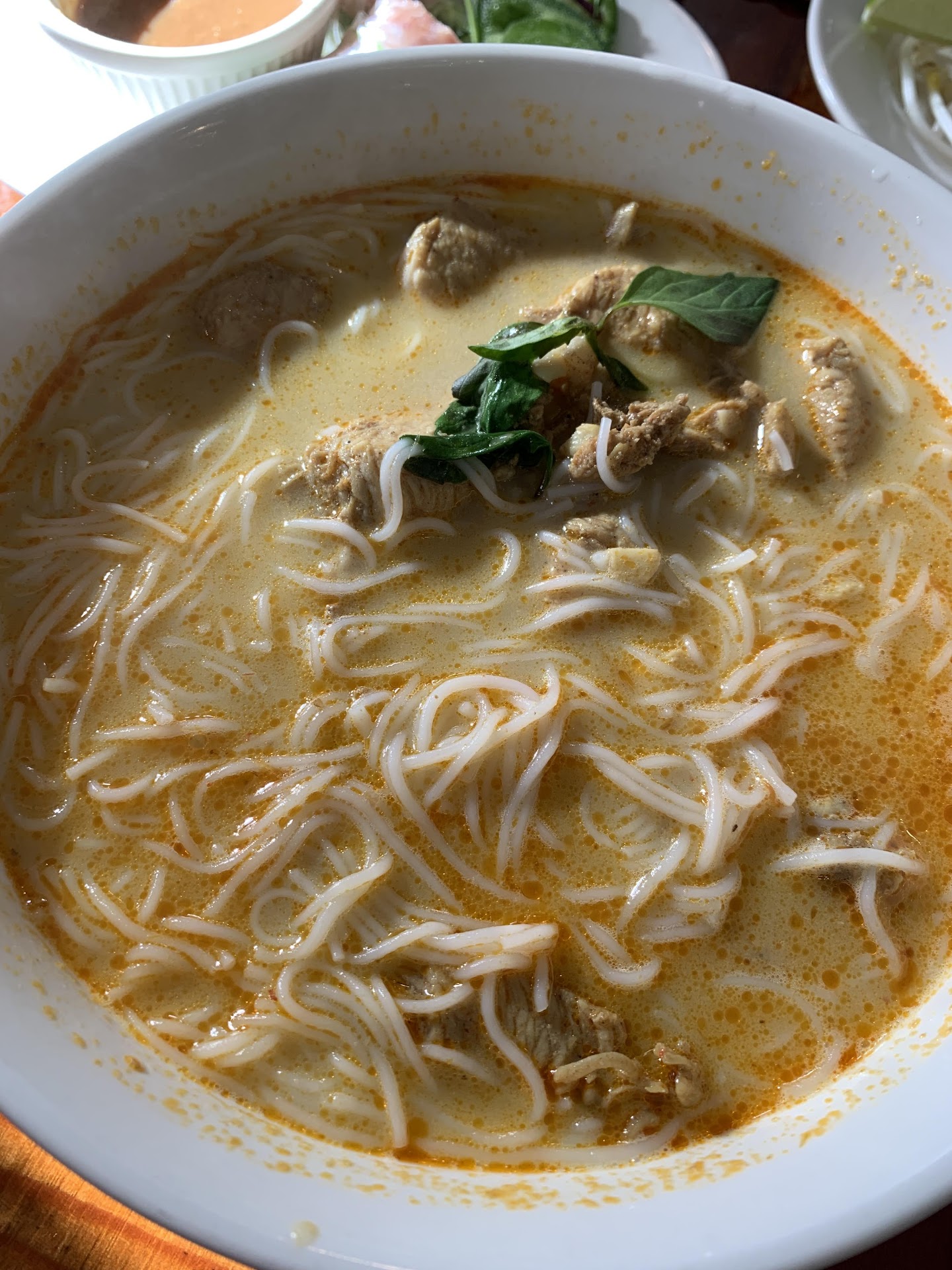 It pains me to write this review because I am very forgiving when it comes to food and service especially when it's busy. Today was not one of those days. Walked into a nice restaurant/atmosphere, seated right away, and food came out fast. Good right? Wrong. Ordered pho special which was okay. The bo vien (beef ball) was really rubbery which tells me its been frozen for a while. Pho came out with 2 small limes and I asked for more lime and I got the "your stupid" look,that the other reviewer mentioned. That's expected though with most restaurants I go to and asking for extra condiments but they make up for it with good food. My girlfriend kept asking for seafood dishes which they were all out of so she got chicken soup with no chicken. They never gave us tea or water which i had to ask for twice. Tea was cold. and water never came. Had to get it myself.