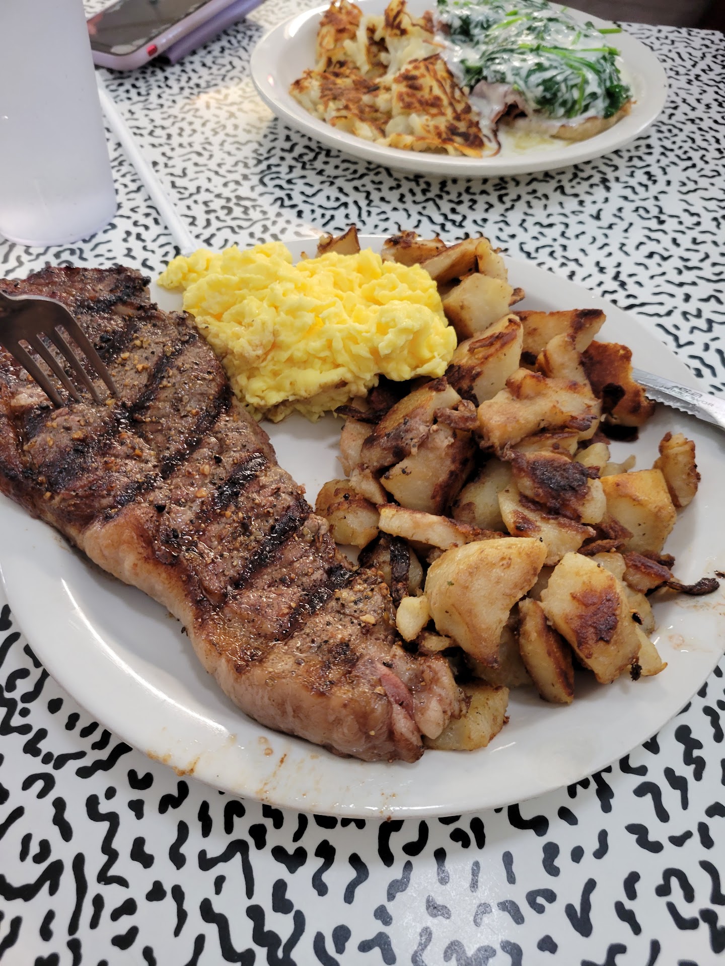 What's the secret menu? Sure, I ordered the eggs with sausage, hash browns, sourdough toast, and coffee. I plan to order again! But what I want to order is hand printed on the board: dinner menu items Wed-Sunday! I want to try the prime rib! All the menu items (need to see the current board for specials) look tempting, and I've had their New York streak, yum, and I look forward to the prime rib! Note, Parking in front and back with back door access. Excellent service. Ok, the bathroom, is a bit smelly.