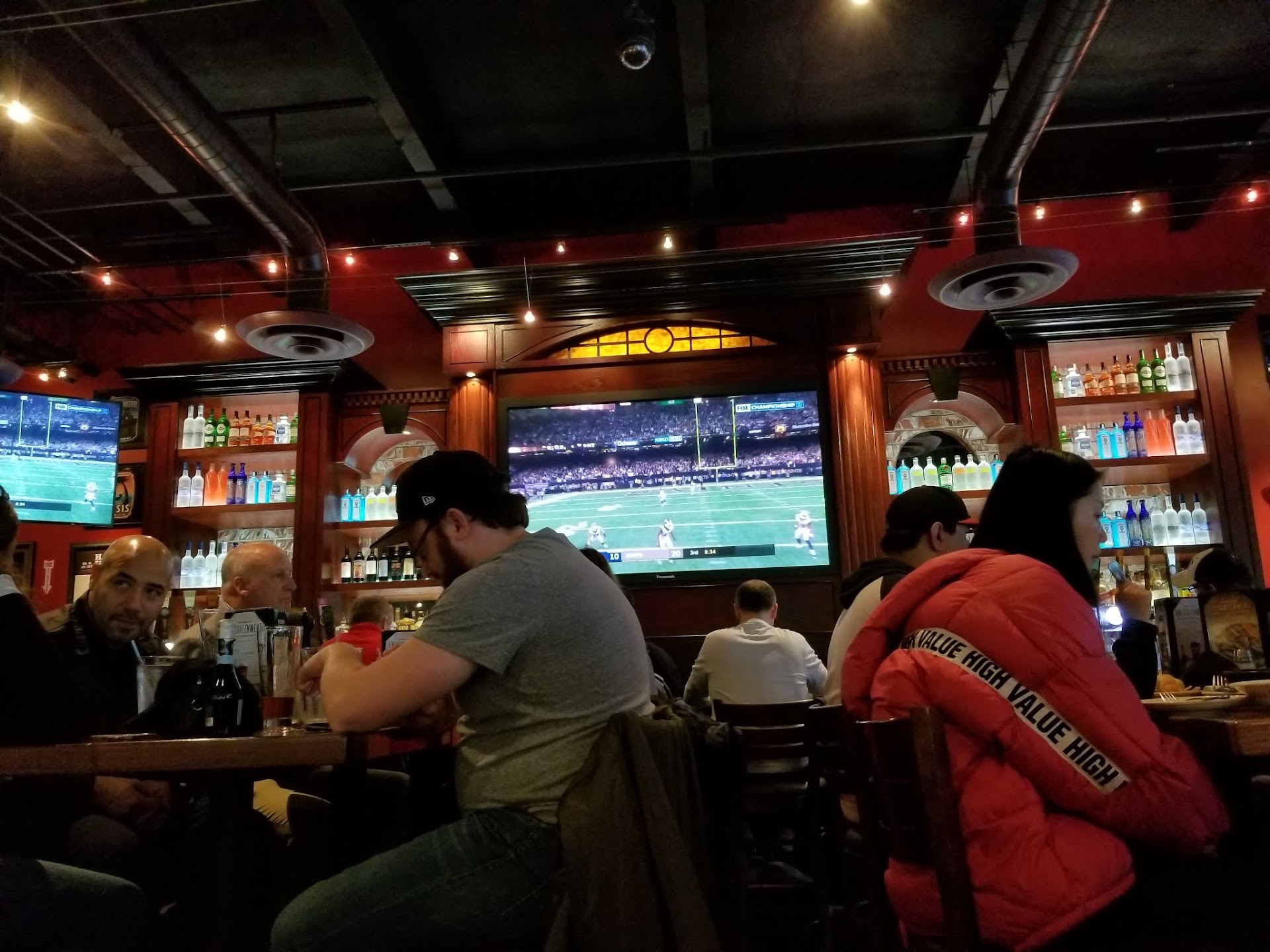 Read moreSecond time here. Great bartenders Michael and Keith. Personable, accommodating, fun and interesting, and provided great customer service! Very nice selection of beers on tap! Plenty of TV's and fellow enthusiastic football fans. But that's it. Service sitting in a booth in the bar was rude and punative to nonexistent. Seriously, one girl spilled my Goliath all over her tray in an EMPTY bar bringing it to me. I looked at her questioningly, said that's not mine, right? She shrugged, mumbled a resentful "sorry" and left it in front of me, partially full, pooling all over the table, glass and stem coated, no napkin. I asked for a napkin. She never returned. Ever. I flagged down a different girl after 40 minutes and asked for a menu to order food. Food ordered over an 8-hour visit (back to back AFC and NFC playoffs, both into OT) was never once served with silverware to eat it. Got cold waiting until I eventually got up and got it myself, despite being in a wheelchair!! Santa Fe Salad was described as the most hearty and filling salad on the menu; I asked for green lettuce and the salad came with white and yellow Romaine, and only a teaspoon of small cubes of chicken. Server never came back to check on us. Maybe they ran out and served it like that? Avocado spring rolls were served cold and mushy instead of crispy. Asked for the check...waited 15 minutes watching the girl we asked do this and that, back and forth. I said, "Let's get up and leave and that will get us our check....otherwise we will be here forever." We got up, put on jackets, moved me into the wheelchair and LOLOLOLOL all of a sudden a girl was there to ask if we wanted our check. I know they are over worked and at times busy, but the service is abominable. When I wanted another beer or iced water or iced tea or a napkin or silverware, I was forced to get up and hobble over to the bar to get it myself. Then and only then, and only a third of the time, did someone walking around freak out and tell me to go back to my table and it would brought, eventually! Also, for a major Sunday football day, food was exceedingly sub par. Asked for the GM when leaving and both host and hostess were too overwhelmed and said there were no business cards for him. Tried calling later, specially to ask why there was essentially NO chicken on an entree chicken salad, but was told he was unavailable and hung up on. It's too bad this place has such unacceptable food and ridiculously nonexistent service...it's a great location and at least Michael and Keith are...