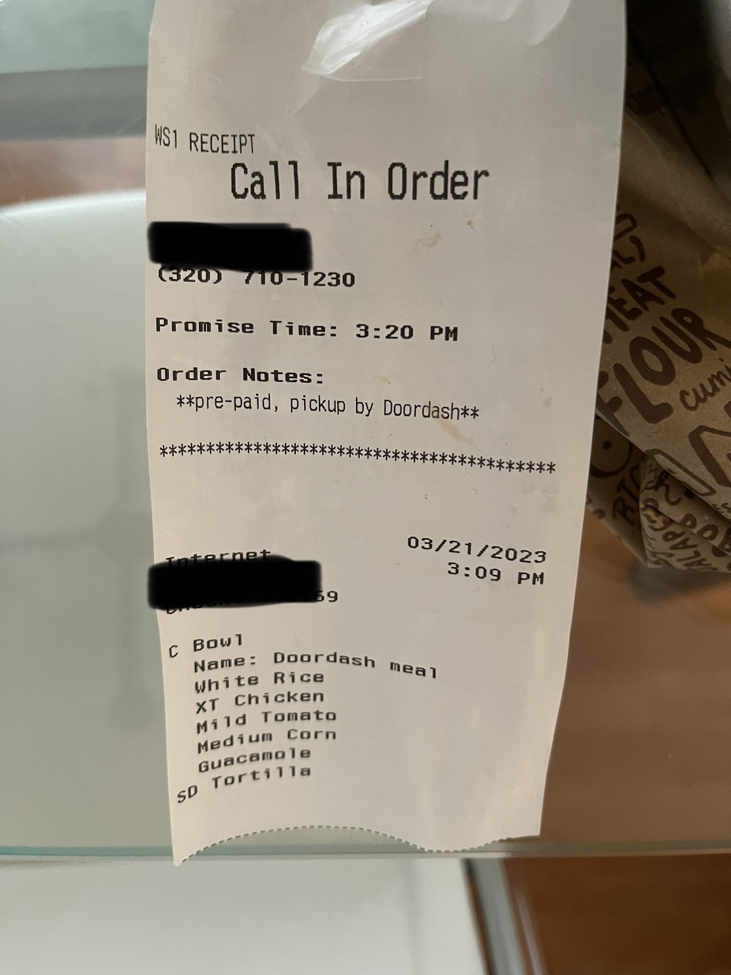 Read moreHaven’t had time to write a review but here it is. I ordered doordash delivery yesterday from chipotle like I always do when I’m busy and this time it was a new location. I didn’t think much of it and ordered anyway. As soon as the driver handed me the bag, I knew something was wrong. There was liquid dripping from the bottom of the bag and the bag looked like it was going to tear at any moment. As I walked up the stairs, liquid kept dripping onto the floor. When I opened the lid of the bowl, I was shocked at what I saw. The bowl was flooded with beans when I didn’t even order beans. The guac was floating in all the juices and it smelled atrocious. I tried to get a refund from doordash but it would only give me a partial refund. I called this chipotle and the call didn’t even go through. Whoever made this bowl needs to be fired immediately and never work at a chipotle again. I’ve always ordered from chipotle and this damn near made me never wanna order from chipotle again. Do better. 30 dollars for...