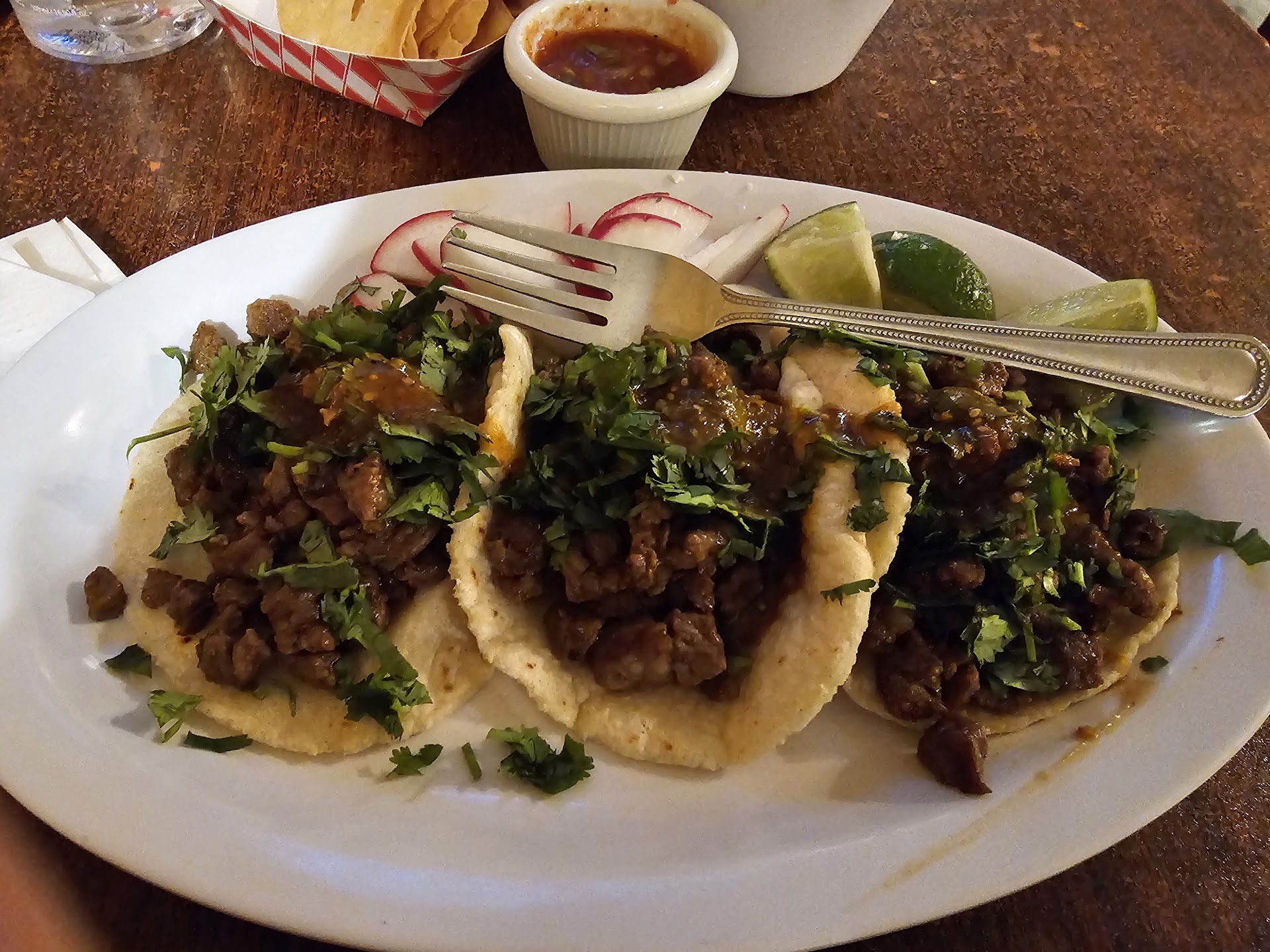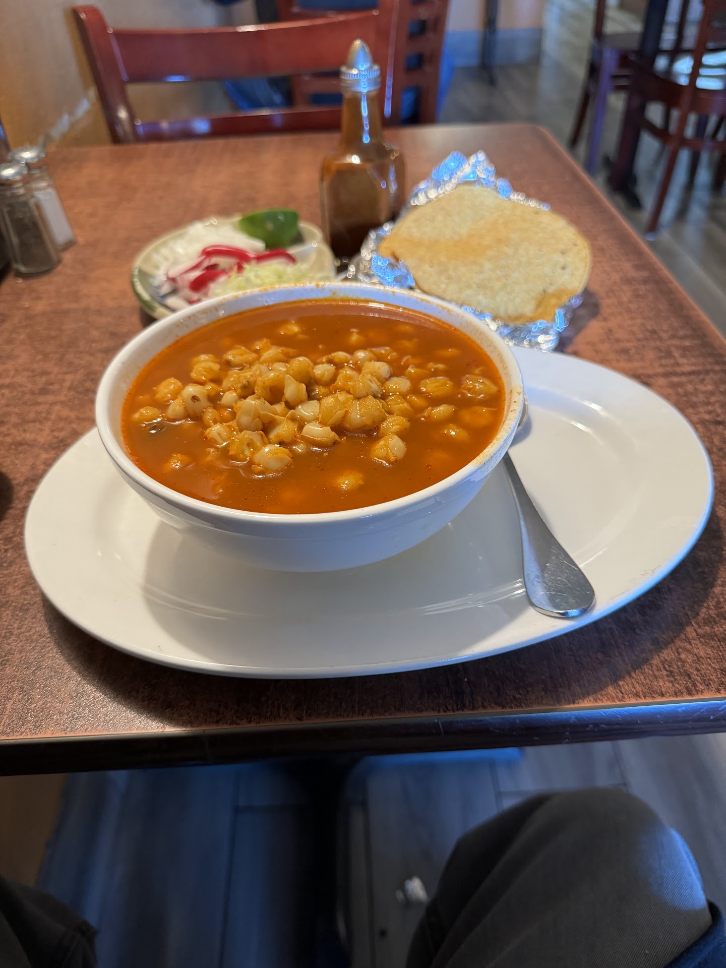 The restaurant sits on a corner right across from The Artichoke Casino. I ordered the special on Fridays, the Pozole, chips and salsa are served when you take a seat, once the Pozole arrived I noticed that it was a bit warm, I like my food hot, the Pozole was served with sliced cabbage, onions, radishes and lime along two of the house tostadas and a bottle of house hot sauce, I only tried a few drops of the salsa that had that Ghost Pepper feeling to it…the heat stays with you even after 10/15 minutes pass by all around your palate. The broth was flavorful and included plenty of hominy, the pork chunks were pretty good. The service ladies did a great job taking care of the customers. I will definitely return when in the area next...