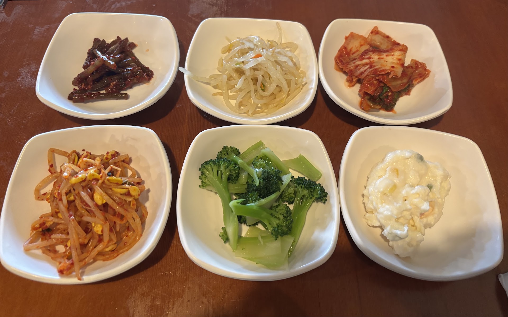 Ā Ā Ā Read moreWe came for a late lunch and it was relatively empty, so we had our choice of tables. The service was excellent, prompt and attentive. Our banchan of 6 dishes came out quickly--we got the usual bean sprouts, kimchi, broccoli and potato saladārefills are available upon request.