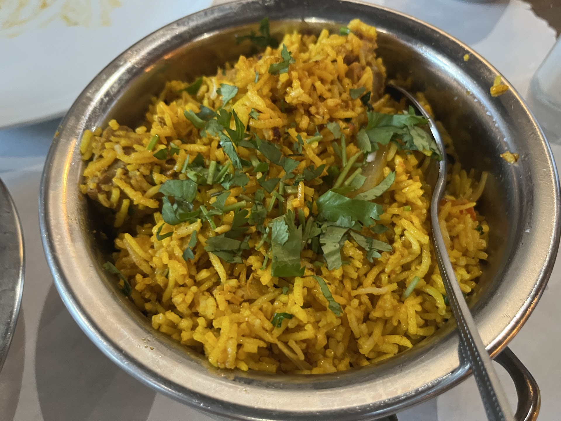 Chicken korma (mild) - good Paneer tikka masala (mild) - favorite but would have liked a little spice Chicken biryani (mild) - good Garlic naan - have garlicy. Not too oily. Crispy.