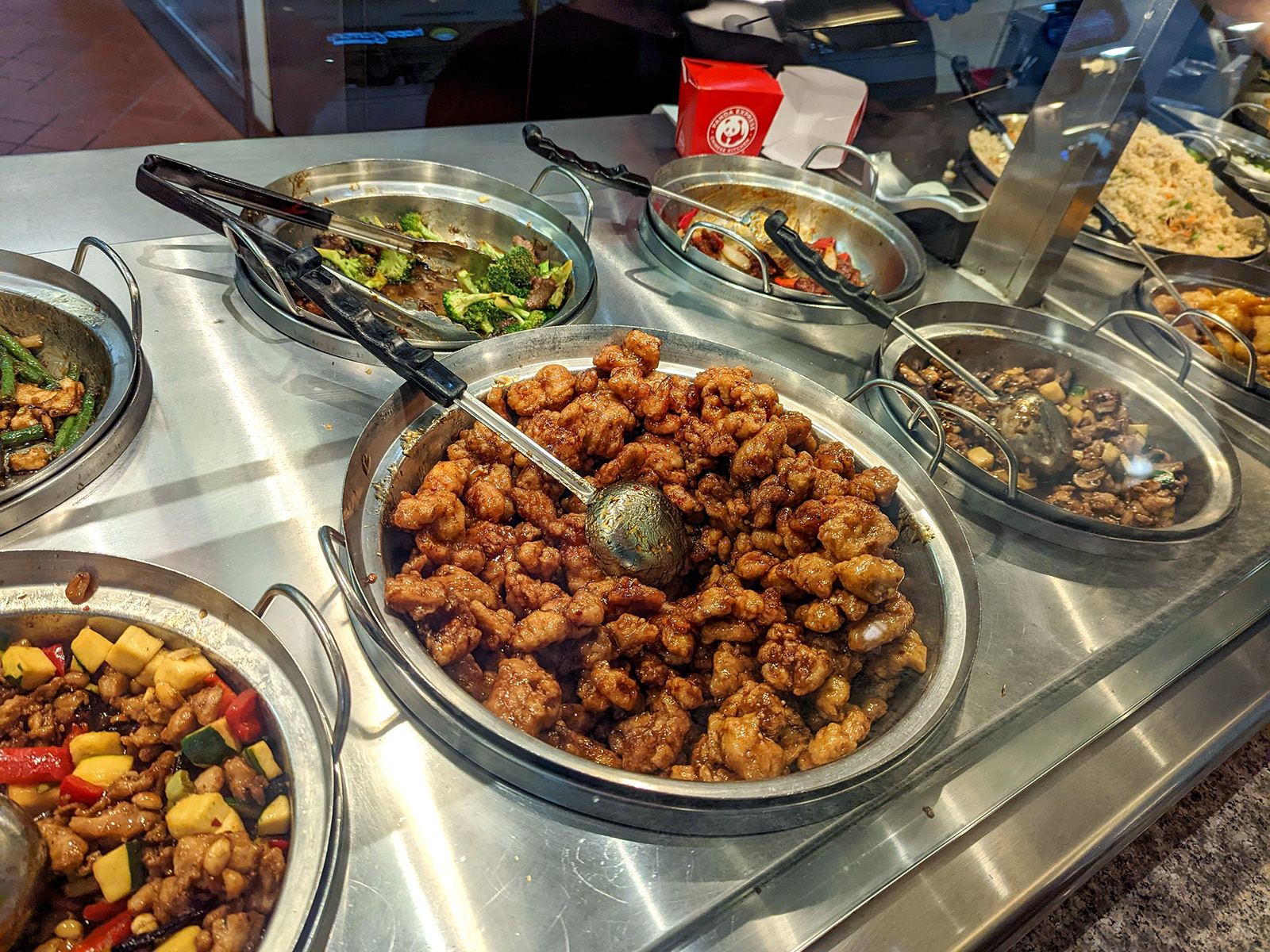 Read moreThis Panda Express is decent. The popular items like orange chicken gets made more fresh than the other stuff sitting around. I had the 'plate' $9.50, which is two items with chow mein and/or fried rice. My friend got 1/2 chow mein and 1/2 fried rice as an option. Their chow mein is favor-less and needed soy sauce and wok favor. I did enjoy the orange chicken and walnut shrimp. This location is understaffed and wait times can be long...