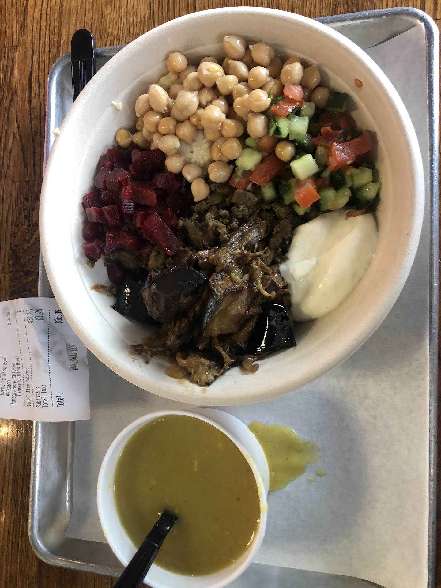 Read moreWhen you walk in to a place and it feels like home, your food tastes extra special! Sajj sources their ingredients locally and it reflects in the flavors. We were warmly greeted by the staff behind the counter and they were super patient as everyone requested their custom orders. I gotta say that a bowl is as good as the rice and I loved the turmeric rice that reminded me of some of the best that I have had! I had chicken shawarma on my rice bowl and loaded up on hummus and yogurt. The portion sizes are huge!! You can definitely split it in two meals.