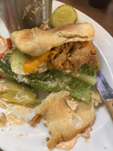 Read moreSat at table with my family. There were a lot of flies wich made it difficult for us all to stomach eating our meals and drinks. They have a neat looking bar area with two large ‘garage doors’ they had opened to the outside, hence the flies. My vegetable stir fry was just ok nothing to write home about. My husband liked his patty melt. When the food came to the table the food runners/servers just auctioned the food off by calling out what it was out loud so I’m assuming they don’t adhere to seat numbers on the printed tickets that the server sends to the kitchen to be expedited properly. A bottle of wine was ordered and they didn’t have wine chillers there so instead they used a large plastic blue bucket. My mother-in-law’s cod sandwich was a tad over cooked. Our server Linda was very sweet and super attentive although she royally mixed up all the items on all our separate checks. It happens we understand. As a large family we probably won’t be back to dine that way. But I could see sitting at the bar in the winter to watch a football...