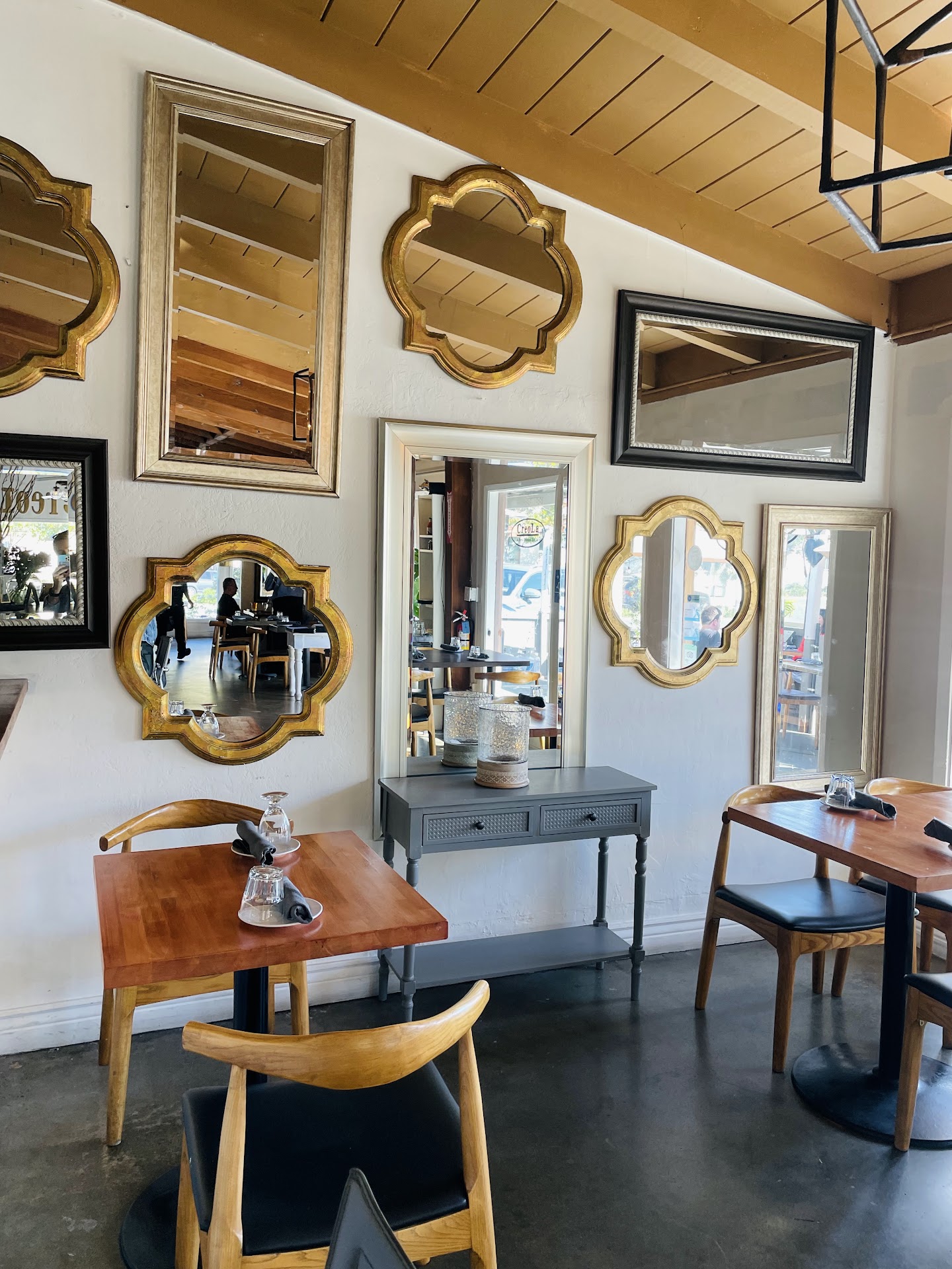 The restaurant is calm and pretty. The music invites you to stay a while, and there is a lot of pleasant sunlight in the early evening.