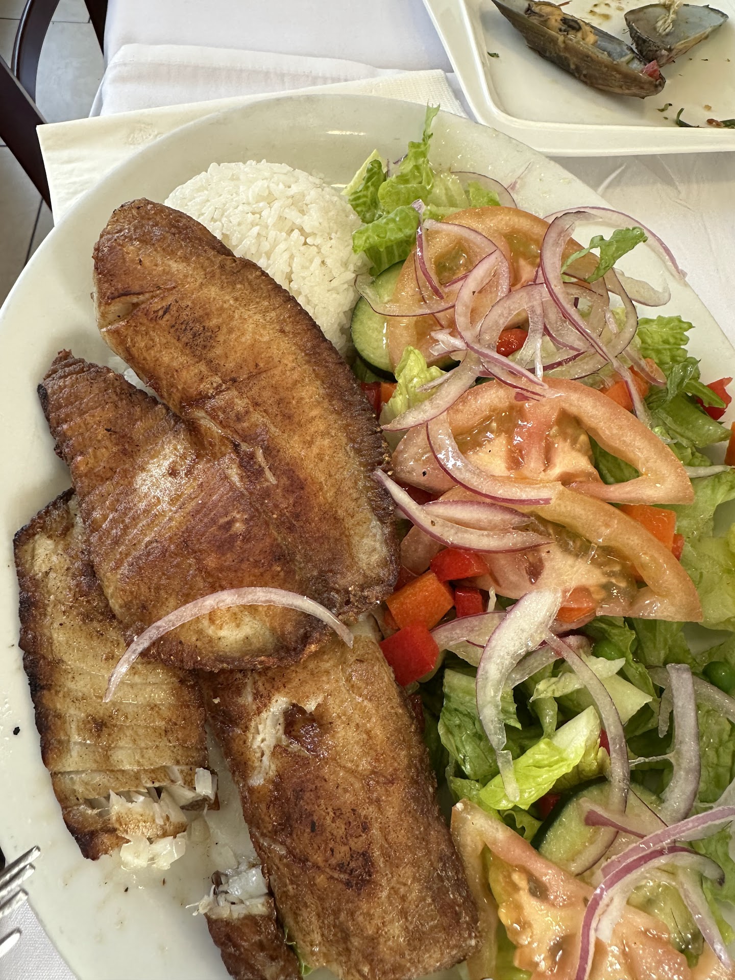 Read moreWanted to try this location several times while in the San Carlos area. So today, we decided to try. We ordered the following: Bistec a lo Pobre, lomo saltado, Pescado a la Plancha, La Chiclayana and to share Chicharron de Pescado. For drinks, we tried their Pisco Sour. The chicharron de Pescado was delicious. Super fresh. Very good. Our dishes started to arrive while we were eating the Chicharron de Pescado, boy. Let me say, their portions is huge. The steak was good but a little too cooked for my husband. The lomo was very tender. The Pescado a la plan ha was very good and finally the La Chiclayana (seafood paella) very good according to my brother in law. The pisco sour is not as strong as Limon and Puerto 27 yet it still wasn’t bad. Mom gave her thumbs of approval for large portions and the lady that helped us was super nice. She was doing everything, from taking our orders,bringing our orders and making our drinks. She was awesome. I would...