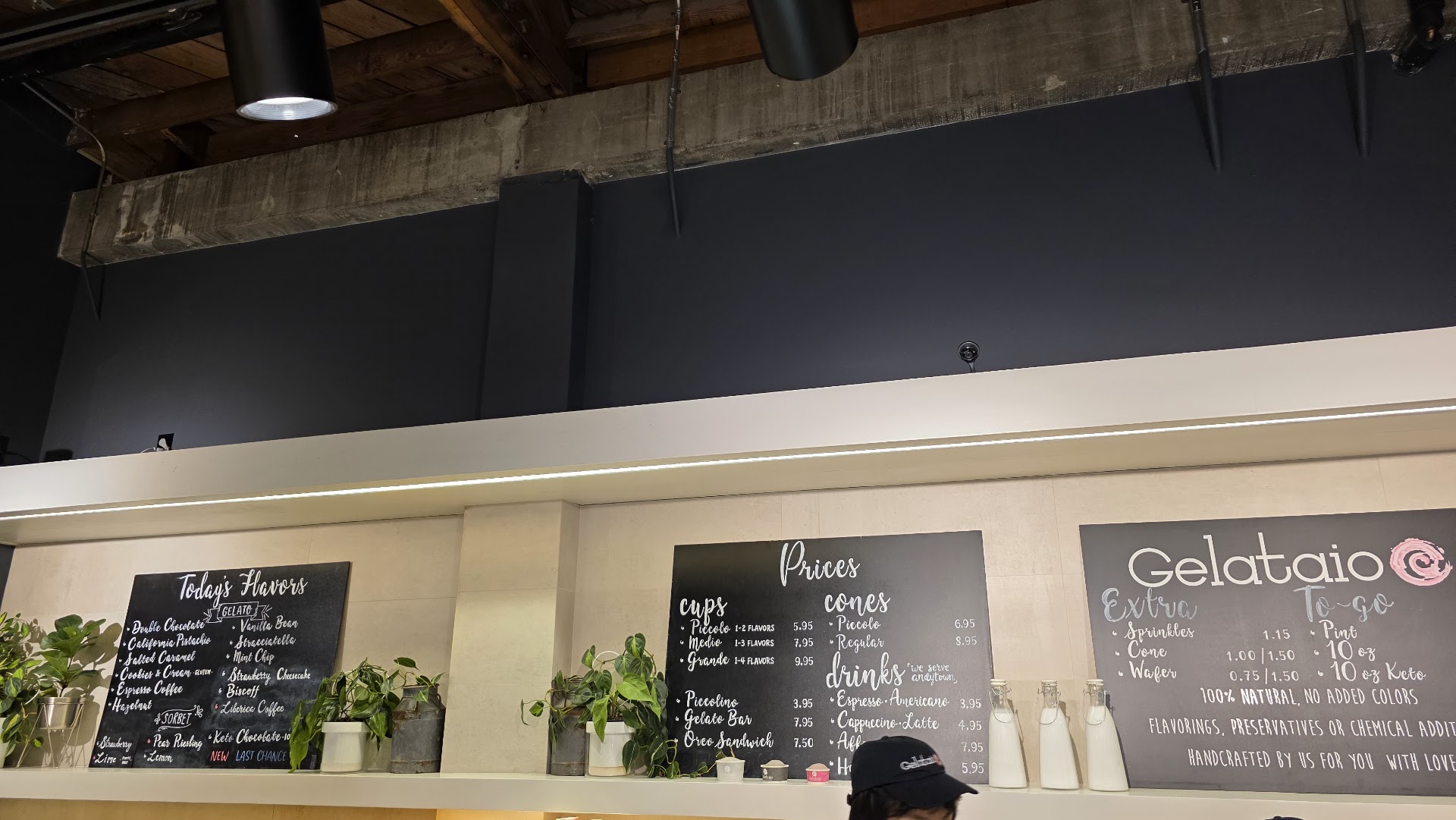 Read moreI LOVED the size of cups they offer. I had the small and it is like an American child's size but you get TWO flavors! This is gelato not ice cream so the sizes are consistent with what we had in Italy. I had the raspberry yogurt and mint and chip, both were good and I was impressed that the yogurt was tangy like real yogurt. My husband had the medium with vanilla and chocolate and loved the chocolate but thought the vanilla needed more flavor. They offer milk or dark chocolate topping from a fountain that they dip a wafer under and drizzle over the gelato. They have free water if your thirsty, it's toward the back of the shop. The service was excellent and the reasons they didn't get 5 stars is because of the lack of flavor of the Tahitian vanilla and they don't wear gloves but I did see them washing their hands. That doesn't bother my husband at all. Great location if you want gelato after dinner. They have a sign that they...
