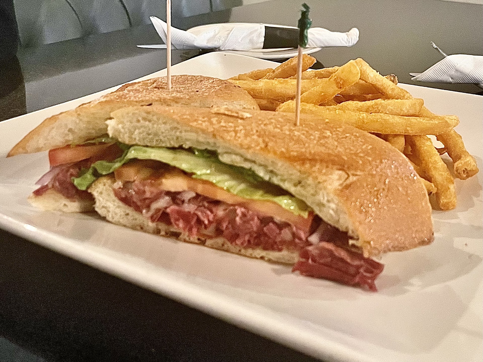 The food is obviously comfort-food style. Good portions. Slight Irish twist such as Fish and Chips and Irish Stew French Fries. Again, tasted fine and way above average for a pub. And they seem to be serving breakfast, lunch and dinner as well as everything in between so this could come across a bit dubious whether they'll get even one of them right.