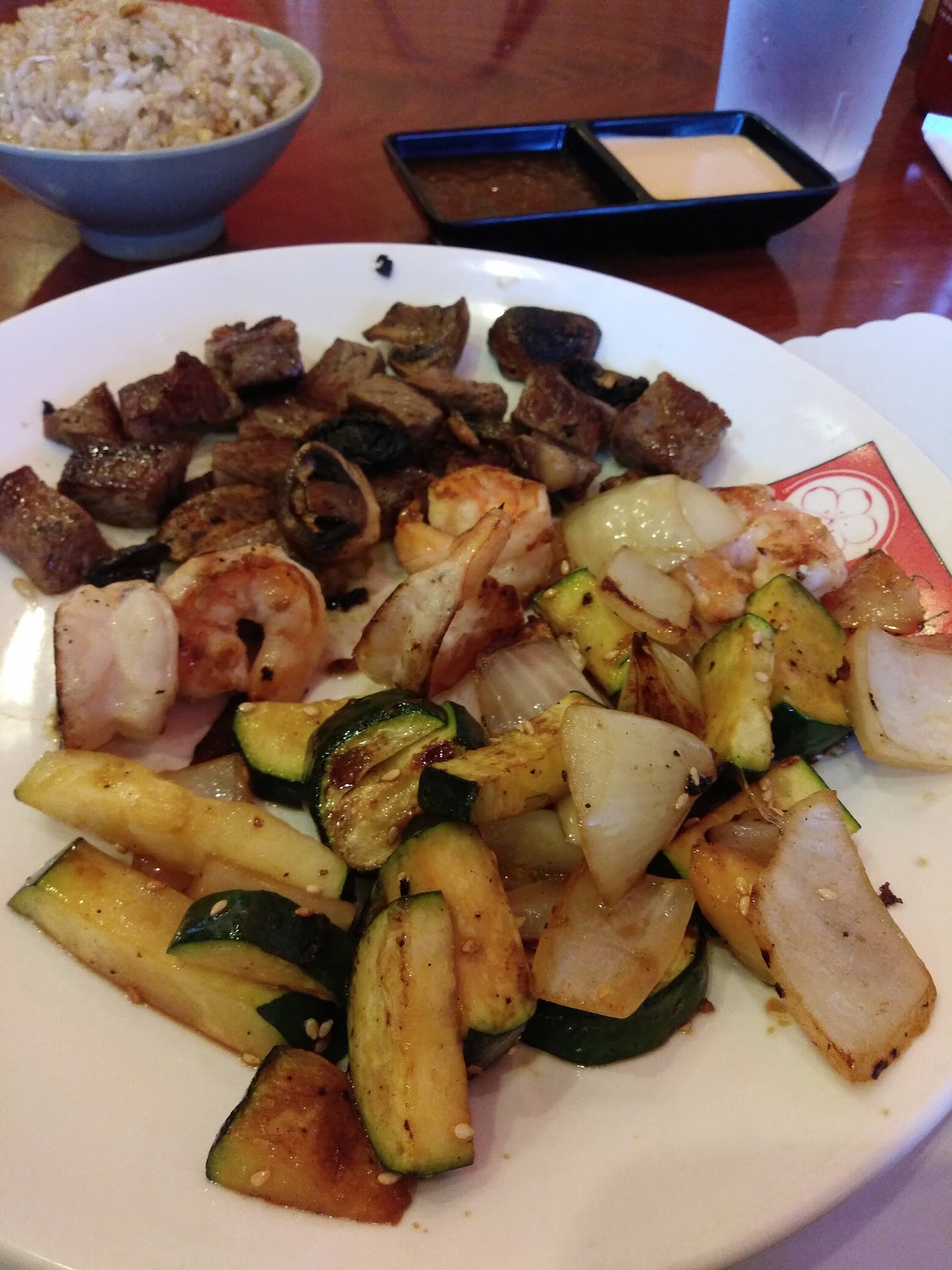 Further adding to the undercooked food, all of it was bland. It's like they don't care to spice anything. Every other teppanyaki place we've been to has been delicious.