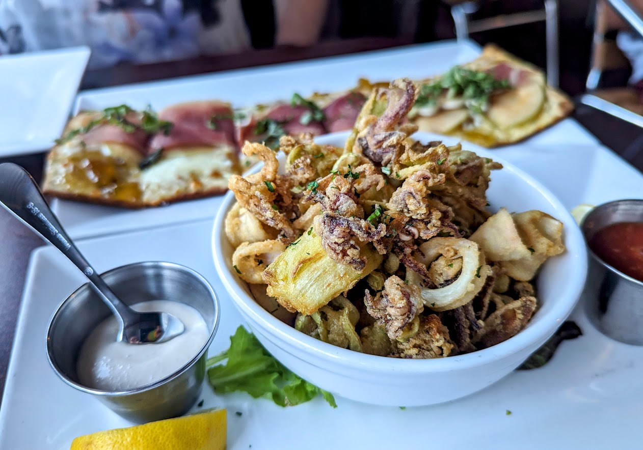 Read moreWe really wanted to like this place. Unfortunately, it wasn't just meh...it was flat out bad. The service was clumsy, with waiters putting our menus on top of our plates and hovering without actually asking how things were going. We both did the wine flight. The presentation was...odd. The full size wine glasses on a holder that takes up half the table. My partner did the whites and 2/3 were terrible to the point of being undrinkable. I did the pinot noir and couldn't even tell if I like them, as they were served not just room temperature but warm. We wound up sending both flights back. I ordered the lamb burger medium rare and received it medium well with sweet potato fries that-given their absolute nothing taste-appear to have gone form frozen to fryer. My partner got a mushroom flatbread, which she aptly described as being equivalent to what one would get at Subway. The only reason this isn't a one star review is they did take the flight off our bill without question...though the manager stood nearby watching and never came over to discuss. We will not...