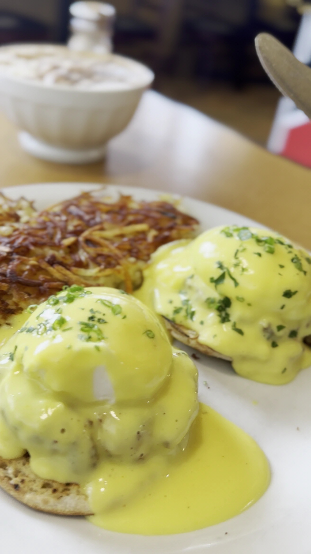 Let me tell you about their special crabcake Benedict — absolute game changer! The crabcakes were perfectly crisp on the outside while staying delicately tender inside, topped with poached eggs that burst with that gorgeous golden yolk when cut into. The hollandaise had just the right amount of richness and acidity to complement the crab without overwhelming it. If it's on the specials menu when you visit, don't even hesitate!
