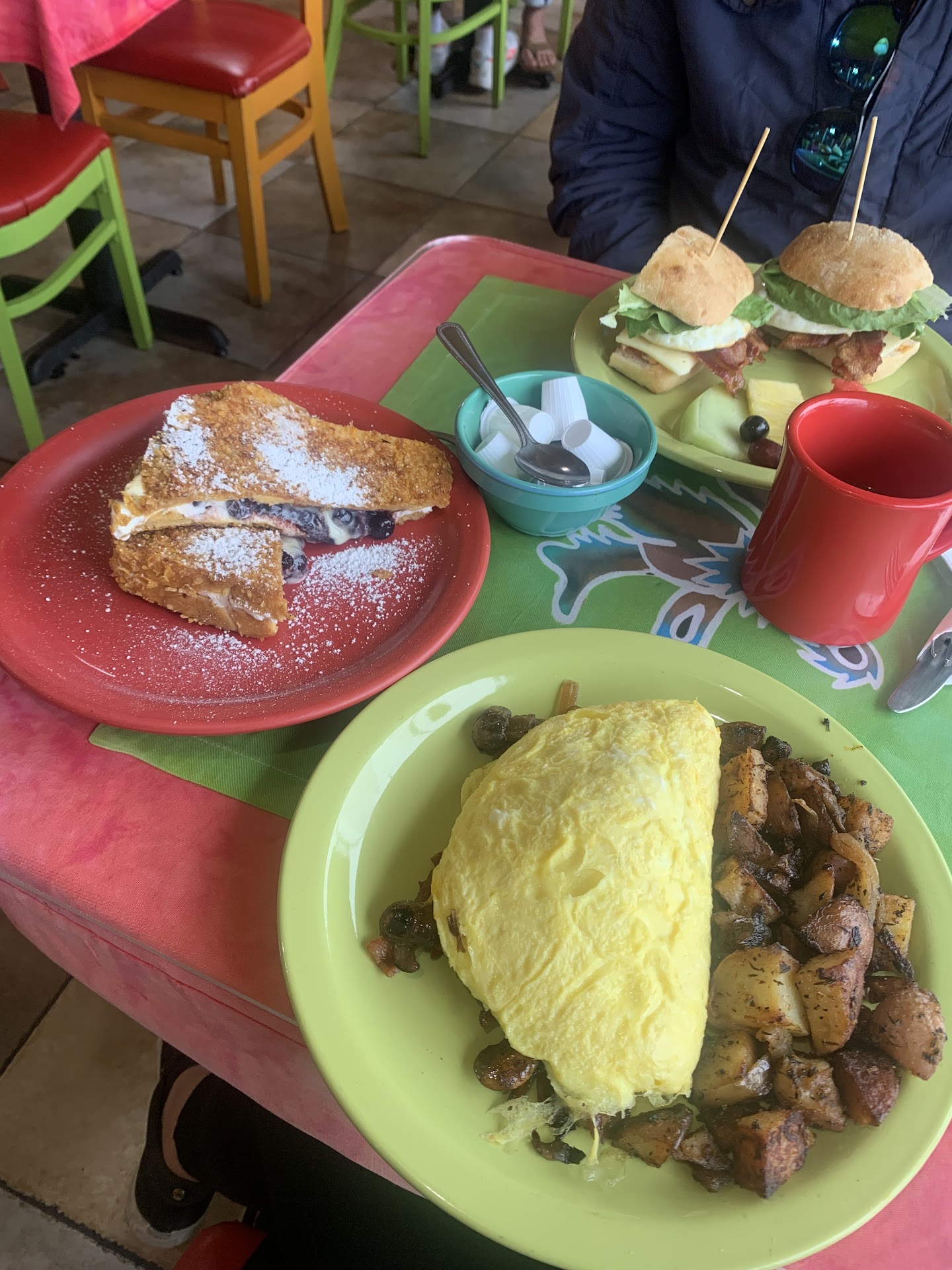 I was a little disappointed because their google menu was a little out of date. They didn't have the pulled pork omelet or the banana- caramel fluff cream cheese stuffed and crusted french toast.