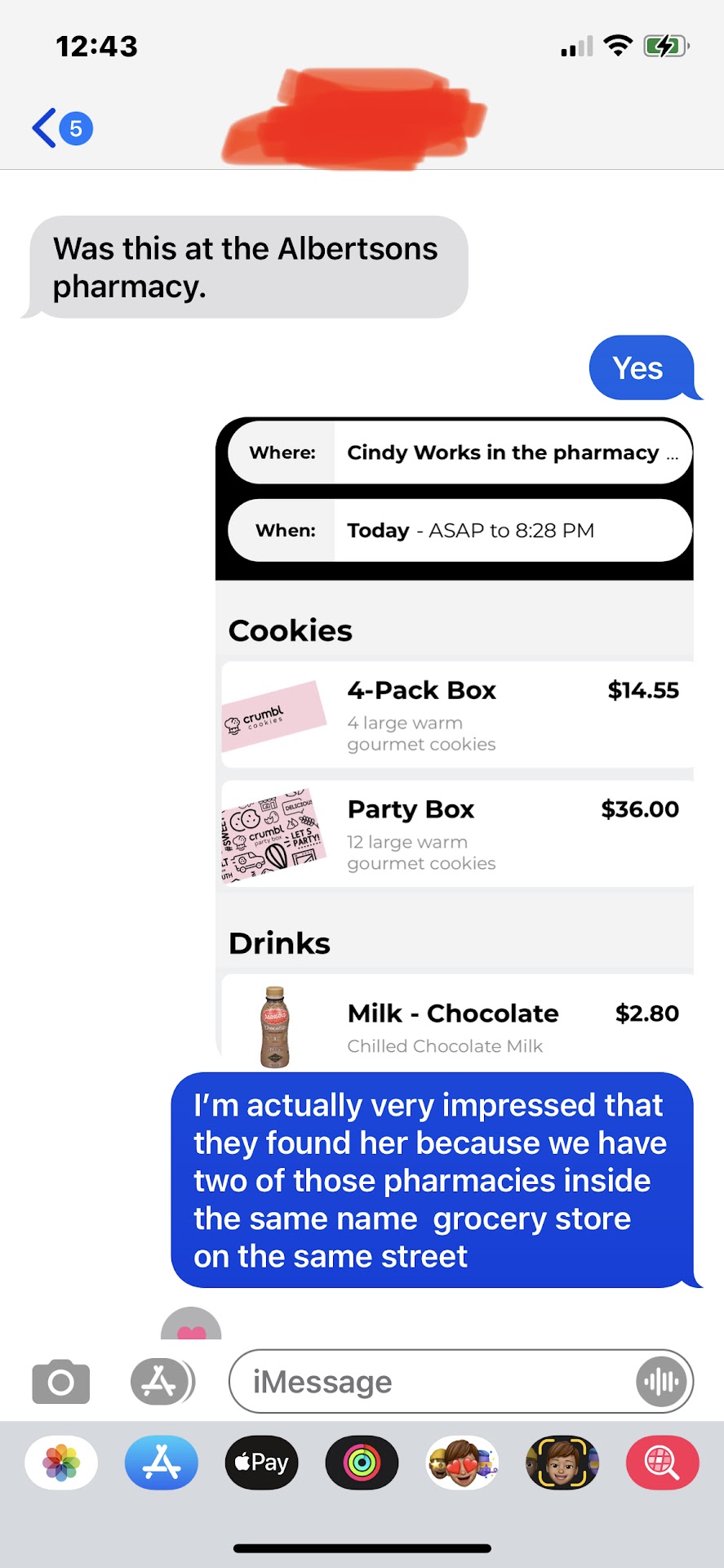 Read moreWow!!! Talk about amazing. Here’s what happened in less than 30 minutes. I wanted to return a kindness that had been offered to me by an employee at the local San Clemente pharmacy. Hmmmmm what could I do to truly thank someone for helping me so much???? A friend had told me about how Crumbl Cookie delivers. I literally downloaded the app (in less than 15 seconds) clicked a few buttons, put in a crazy generalized location description… (I only had the first name of the employee) Also, the app even gave me a box to write a personal note to the recipient! Apple Pay popped up and BAM, I was done in about two minutes total! I was dying at how easy it was. It was just a little bit longer and she literally got delicious cookies delivered right to her at the pharmacy - including my note of gratitude for her kindness. WoW!!! everything from start to finish seemed to only be minutes. She actually called to thank me and she couldn’t believe the amazing cookies. She was so appreciative. It felt so good to let someone know that their actions didn’t go unnoticed. Thank you Crumbl for making it a snap to make someone feel appreciated!!!! This is my new 100% go to gift. So easy I’m...