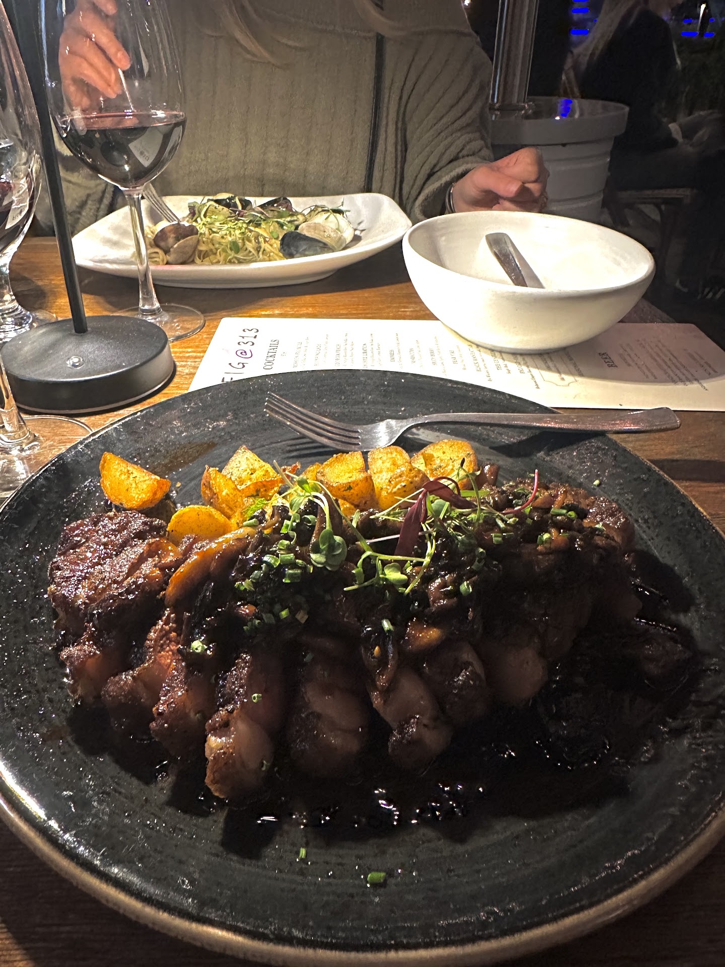 The brilliance of the evening didn’t stop there. We began with an appetizer that, frankly, set the bar sky-high—the braised pork belly. It was an absolute standout: rich, savory, and perfectly balanced, with just enough crisp on the edges to contrast the melt-in-your-mouth tenderness. If there’s a dish that could represent Fig 313’s ethos, it’s this one—simple yet meticulously crafted.