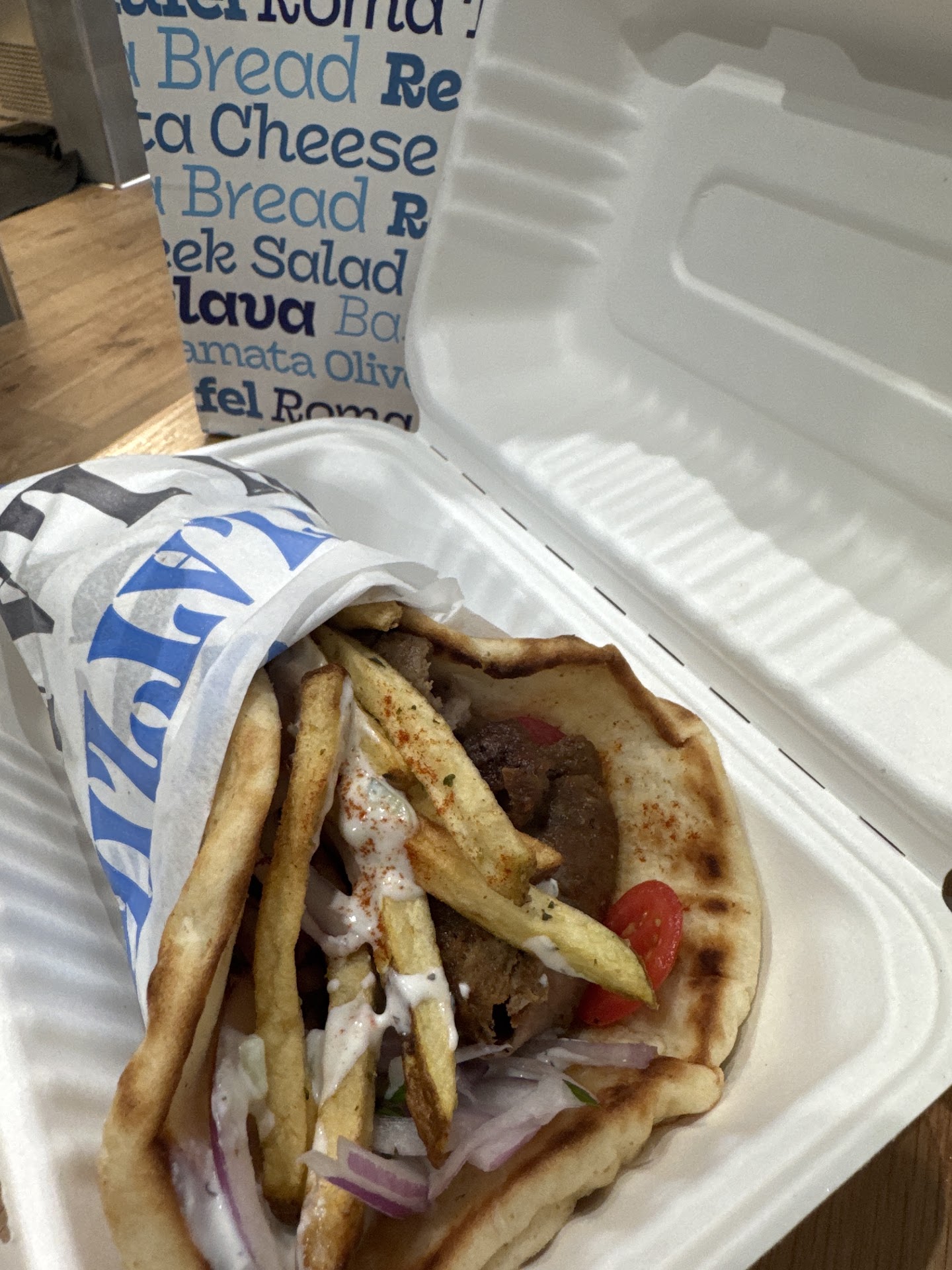 Read moreI really wanted to love this place because I love Greek food. I ordered the Gyro Plate with Chicken "to go". The chicken was salty, greasy, processed and was literally chicken crumbs in a box. I've never seen anything like it. It looked like they scraped tiny scraps off a cutting board. The "salad" that came with the plate was only red onions with three tiny tomatoes slices and it was undressed. The fries were good, pita was dry and cold. If I were in the restaurant I would have sent it all back for them to try again.
