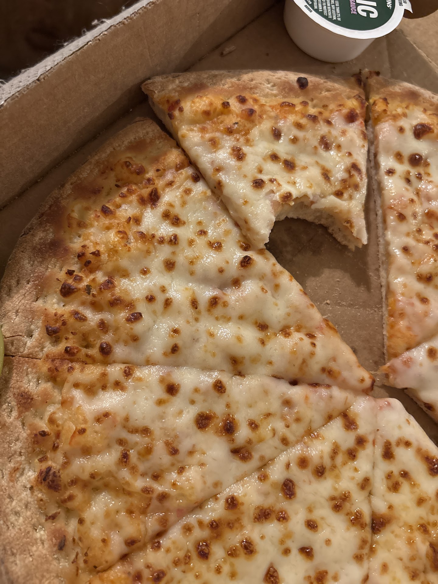 Read moreWhile staying at a local hotel my family placed an online order. I was given a 38-48 min estimate till delivery so after 50 minutes had passed I checked the online tracker to find that it said my pizza was in transit. However, after an additional 5 minutes lapsed (the hotel is only a mile away) I phoned the restaurant. The person who answered stated the pizza was actually still baking but should arrive soon. It ended up arriving 15 min later (so it took 1 hour 15 minutes) from a very friendly and apologetic delivery man. It's dine, we understand -- however I was dissapointed when I saw that my "double pepperoni" only had a small portion of pepperoni (probably about 12 total). Anyway, papa John's is good pizza but just a dissapointting...