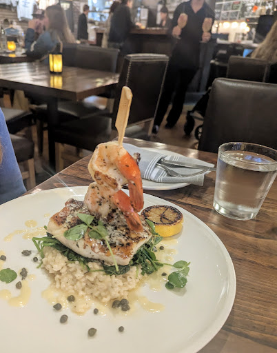 When the bartender did appear, at least he was pleasant, & asked to take our orders. My wife & I shared a glass of the Remington Tempranillo. Our friends split a glass of Michele Merlot. Each of us enjoyed sipping our wine. 2 four ounce pours of wine totaled $30, a bit pricy for my taste. On their web-site, I noticed that a bottle of the Remington Tempranillo sells for $54. On the chalk board in the bar, it was priced at $49.Yikes! Still expensive. I looked over their menu, and it appears they have a fairly sizable amount of food options, featuring some nice gourmet food choices as well, but with equally gourmet prices.