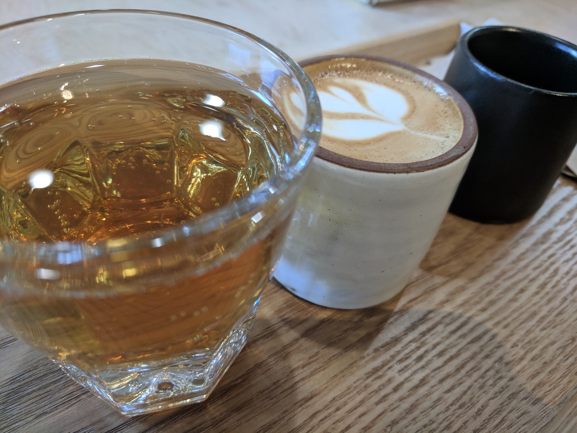 I tried the pink bourbon, which is a columbian coffee, black and hot. The roast was spot onâ no ashy taste. But the thing that was most impressive was that the coffee gave me a strong impression of grapefruit and bitters (like jasmine tea or, interestingly, a Negroni). The coffee is light, acidic, and finishes with dark chocolate notes.