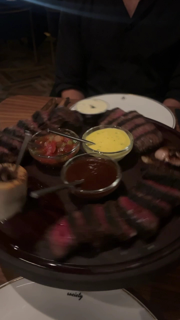 Read moreRare Society offers a unique and vibrant atmosphere that truly lives up to the influencer videos you might have seen. As you walk in, you're greeted by a dark yet lively room with an impressive wine cellar selection on the right, a bustling bar further in, and winding stairs leading to additional dining space on the second floor. The ambiance alone earns this place five stars.