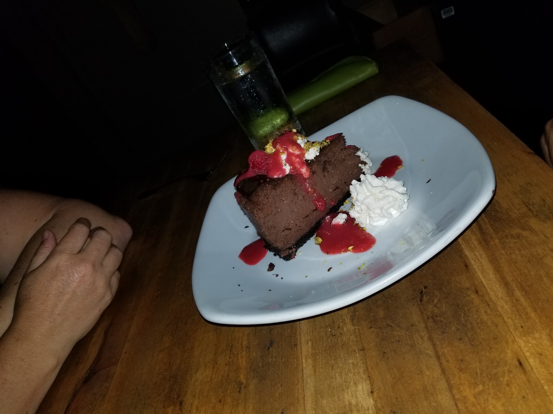 Read moreSENSATIONAL SERVICE ! After hearing from staff across the street at Parlor how good this place was...I made a dinner reservation for 6pm on Thursday. PARKING ! Finding a street parking spot on El Camino Real is hard at any time let alone in the evening. HOT TIP ! A local restaurant manager told us...the Presbyterian Church up the street is great for parking. AND WE DID ! It was a short downhill walk to Vine. A sweet hostess named Justice welcomed us warmly and showed us to a table in the intimate dining room....not near the bar as I requested in my reservation. Our server Heather looked after us like royalty for the duration of our dinner visit. FIRST UP ! We enjoyed a couple of fabulous appetizers.....House Made Pumpkin Ravioli ( fresh truffle goat cheese, toasted hazelnuts ) and Cast Iron Roasted Brussels Sprouts & Kurobuta Pork Belly ( pear mostarda, candied walnuts, citrus-garlic honey ). CRAFT BEER ! Not the most pleasing craft beer selection I've seen but in the end I decided on an Anderson Valley Brewing Hop Ottin' West Coast Style IPA....it tasted good enough. ENTREES ! There were 2 burgers on the menu and I decided on the Mexicali Burger ( american kobe beef, queso fresco, avocado, chile de arbol aioli, sweet onion slaw, roasted spicy serrano chile, hand cut herb fries )...Heather kindly asked my preference....medium rare thank you. BUT THEN ! My wife fell in love with the Chorizo Braised Lobster Starter (saffron pearl couscous, garlic confit, charred cherry tomato broth ). In the meantime Gabe the very attentive partner / manager dropped by to check on us....we had a friendly chat. FAST SERVICE ! Before we knew it our incredible looking dinner dishes hit the table. OOH LA LA ! My wife went nuts over her amazing Chorizo Braised Lobster.....even shared some juicy lobster with me. WOW ! My Mexicali Burger had the biggest beef patty I'ver ever seen and it was cooked perfectly to my preference...medium rare. The huge pile of hand cut Herb Fries were a challenge to get through ....very herby and I would have preferred crunchier. THE BIG FINISH ! They have a pretty decent dessert menu here but the big standout is the DARK CHOCOLATE BELGIAN CHEESECAKE. Trust me this super decadent dessert will send your tastebuds to nirvana. Heather asked if we felt like cappuccinos so we said yes to a couple of decafs. We enjoyed our evening...