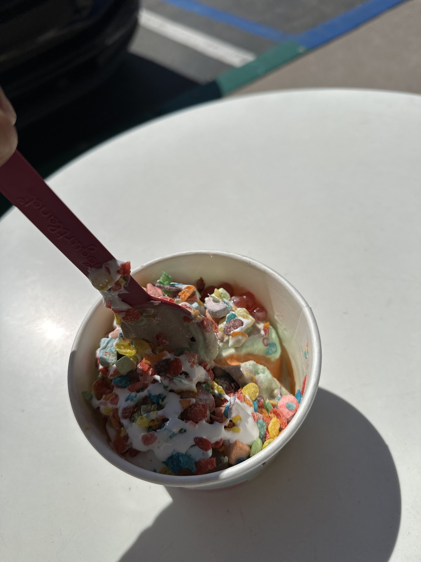 Read moreYogurtland is Yogurtland, thereâs not a lot to review there. Itâs a typical rotating menu of frozen yogurt with the options for fresh fruit and other toppings tho at you can buy, and eat, by the pound!