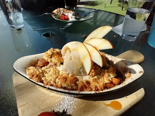 We visited yesterday (Sunday afternoon) and loved the food and presentation. We ate outdoors on the small patio even though it was quite cool (one of our party has a deathly fear of COVID). Service, right from the start, was friendly, helpful, and accommodating. We were the only ones on the patio at first, but the servers kept track of us and checked on us frequently. On the recommendation of two of our party (who had been there before), we started with the Brussels sprouts appetizer. Que? I am not a fan of Brussels sprouts, but I may be converted after tasting these. They are wonderfully flavored and lightly sauteed - great dish to start. We also got the "Devils on Horseback" (6 Palm desert dates stuffed with blue cheese, wrapped in prosciutto and a maple-bourbon glaze). It was late enough in the afternoon for us to have an early dinner, so we all went for full dinner items. I had the Ribeye - thick, flavorful, with a rosemary-garlic butter. One of the best Ribeye's I have had - great flavor, very low amounts of gristle, just the right amount of fat. My wife had the Scottish Salmon, which she said was very good, although after seeing and hearing the other menu choices, she would have preferred the meatloaf. M. had the 50/50 Bison meatloaf - ground grass-fed bison, topped with Manchego cheese and pork brisket. He exclaimed that it was very very good, and would definitely get it again. S. had the 1/2 rack of lamb and loved it. All the meals were accompanied by chef's vegetables (thin-to-medium sliced vegetables in a rich butter sauce), plus Yukon whipped potatoes (the Salmon came over a coconut-sweet potato puree). We finished with some desserts. A creme brulee made with Chambord, a "Jeremy's Signature Triple Layer Carrot Cake" (huge, standing upright, with plenty of cake, cream, and carrot), and my choice (unanimously voted the winner after they all demanded tastes) - the "Cast Iron Apple Cobbler" (see photo - unfortunately it was quickly attacked when it arrived, so the photo doesn't do the presentation justice). The Apple Cobbler was outstanding - so delicious we reduced it to nothing - it is a good idea to have some help with this - it is pretty large for a single dessert serving! To wash all this down we had glasses of wine from mostly local regional wineries - all quite good. I had a glass of the Cycles Gladiator, which turned out to be a nice, well-balanced Cabernet. Others had a La Serenissima Claret, and some Chateau Saint Michelle Riesling. Inside looked interesting - I plan on trying the indoor dining next time, and we will definitely be back. Jeremy's On The Hill is well worth a visit. The food is spectacular, the service is great, and the location between Santa Ysabel and Julian...
