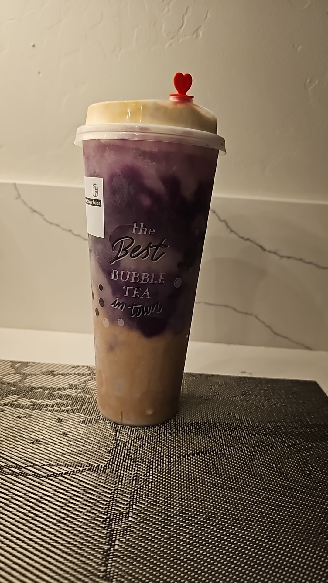 For some reason all of their crème brûlée and sea salt foam has a hint of coconut milk flavor. I’m very sensitive to flavor so the combination of the coconut milk with my jasmine tea ended up tasting like Gorgonzola (blue cheese). I’m also not a fan of coconut milk in everything, which is why this time I opted for the only scenario where it makes sense: taro & Ube. There was so much good taro paste in this drink.