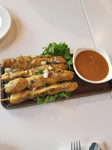 We ordered a chicken satay as a starter. The amount of chicken on each stick was decent and was great as is or with the peanut sauce provided. I ordered the basil chicken with mild spice. I will mention that if sensitive to spice that even mild had quite the kick. I also tried some panang curry (mild) and enjoyed the flavor. Portions were large and we had leftovers for another time. There was only one lady handling the tables, but she checked on us frequently and we had a nice chat with her before we left. Overall thought this was a decent thai place in the area.