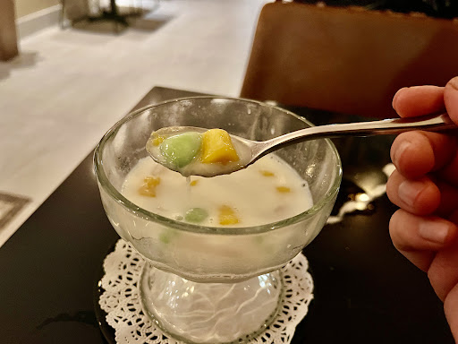 Thai Iced Tea with Coconut Milk: 4/5 Thai iced tea is hard to mess up and Aaharn does 56 does a great job at it. The drink was smooth, not too sweet, and the use of coconut milk made it lighter than those made with half and half. The light coconut flavor helped accentuate the gentle smokiness and richness of the tea while also imparting an almost tropical flavor. I enjoyed this a lot and it really helped control the heat of the food.
