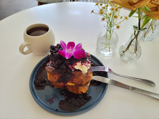 Read moreFirst time trying them out since I live right down the road. I was super excited to see such a cute spot in my area. I I specifically went for the French toast. Which was displayed on a paper menu, but I was told that they were out of stock. Not sure why it was still being displayed if it wasn’t available. The man then told me that the rose latte that I wanted was not available either. It was only seasonal, I then asked for a lavender latte with oat milk and got two other items of food instead along with a hot chocolate. I then found this adorable florist that I got a bouquet of flowers from who was lovely and was sitting there waiting for 20 minutes with no notice that my food had been up. I walked up to the counter and asked if that was my food and he said yes he gave me a cupholder and I asked if it was oat milk and he said no and I’d have to wait if I wanted it to be redone he was nothing but rude to me. The entire time his tone was dismissive and it seemed like everything I asked for was a burden. This has the potential to be such a cute spot, but I won’t be returning due to my customer service with this one employee. I let him know that he was very rude and short with me the entire time and he didn’t seem to care. Not how I wanted to start my day. The employee I’m talking about is the man with the accent in the pink hair. Do yourself a favor and if you see him...