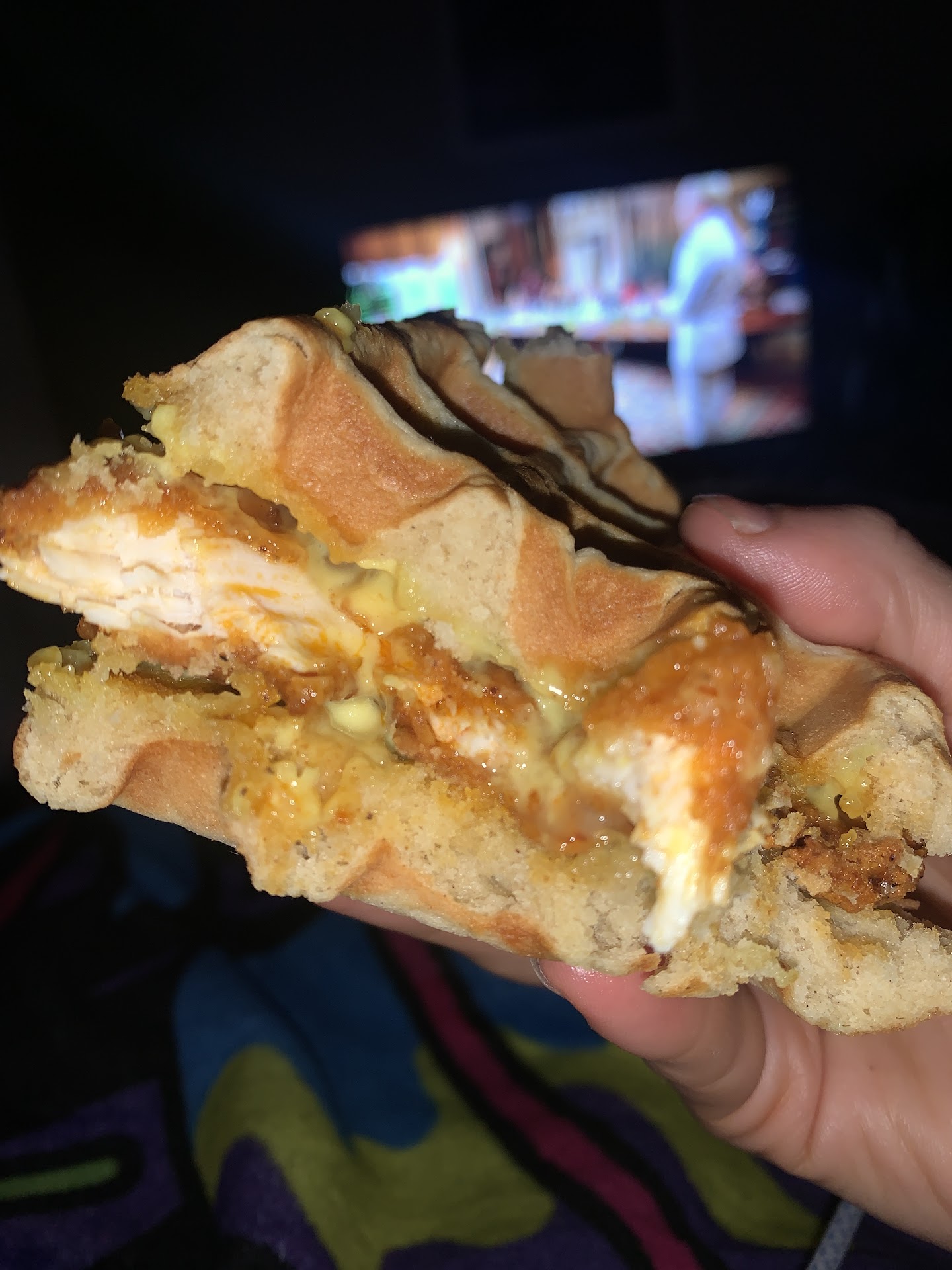 The chicken was juicy even though itās white meat. The flavor in the breading was on point as far as spice levels.