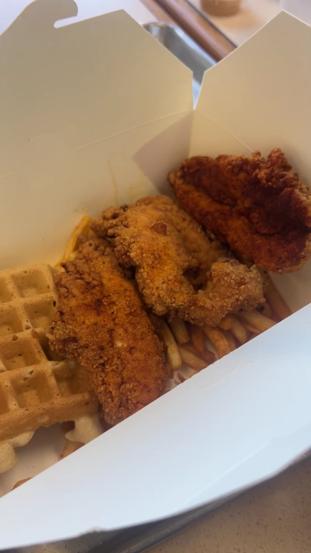 Prices are reasonable, the combo #1 came with 2 tenders, waffle or fries and a side. The mac and cheese wasnāt super creamy. It was a perfect mix of cheddar and Parmesan.
