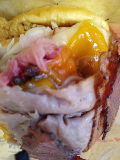 Tried the fried fish fillet sandwich. It was pretty good. It tastes just like the McDonald's fish fillet sandwich, but this Arby's version is a little bigger. The breading is thin and it does not overpower the taste of the fish. Both McDonald's and Arby's have a 2 for $6 special for them. Tried the Meat Mountain sandwich. It is a cost effective way to try all of the meats to decide what future sandwiches you might like. However it is a bit pricey for a fast food sandwich and will just be a single time novelty purchase. Like most fast food restaurants, the sandwiches look way bigger in the advertisement photos. This sandwich stands about 3.5" tall including the bun and contains all of the meats for $12. The bacon was crispy and the meats were all tender and tasty, however the corned beef was very fatty. The chicken strips were small and very dry. Tried the Jamocha shake. It neither had a strong chocolate or coffee flavor. It tasted 99% like a vanilla shake with maybe a 1% trace of coffee/chocolate flavor. I'll stick to chocolate shakes in the future. Tried the curly fries. I wasn't a fan of the batter coating and won't get them again. Tried the King's Hawaiian Fish Deluxe sandwich. It's their regular crispy fish fillet with shredded lettuce, tomatoes, cheddar cheese, and tartar sauce on a King’s Hawaiian bun. The tomatoes were perfectly ripe and the real cheddar cheese was a a good compliment to the sandwich. The King's Hawaiian bun was very fresh with just a hint of sweetness. This very tasty sandwich wins the fast food fish sandwich war hands down. Update: Tried the Spicy Prime Rib Cheese steak. It had a good amount of meat and was very tasty. However it a bit pricey. Update: Tried the roast beef sliders using the 2/$1 deal. Good value and taste. Update: Got 2 classic roast beef sandwiches. Good taste. Update: The crispy fish sandwiches are back! Two for $6. Update: Got the Brisket, Roast Beef, Bacon Dip sandwich. It was very good and the dipping gravy was tasty and not overly salty. Update: Got two Crispy Fish sandwiches. They are better and larger than the McD's Filet-o-Fish. Update: Got the Roast Beef, Jalapeno Roast Beef, Chicken, and Buffalo Chicken sliders; and a large Curly Fries. The roast beef sliders were very good, and the diced jalapenos added a kick of heat. The chicken sliders were good, but a little on the dry side. The fries were just ok, since there were only several curly fries on top, and mostly tiny 1"-1/2" fragments filling the remainder of the container. Update: Got a Jalapeno Beef slider and a Half Pound Cheddar Beef sandwich. Both were very good. Update: Got the bacon deluxe chicken sandwich. It was very good. Got a jalapeno beef slider. It was very good. Update: Got a Cheddar Beef slider and a Greek Gyro. Both were very good. Update: Got a Reuben sandwich. It was very good. Update: Got a Chicken Bacon Swiss sandwich. It was very good. Update: Got two beef n cheddar sandwiches. They were very good. Update: Got the King's Hawaiian Fish Deluxe sandwich. It was very good. Update: Got a French dip sandwich. It...