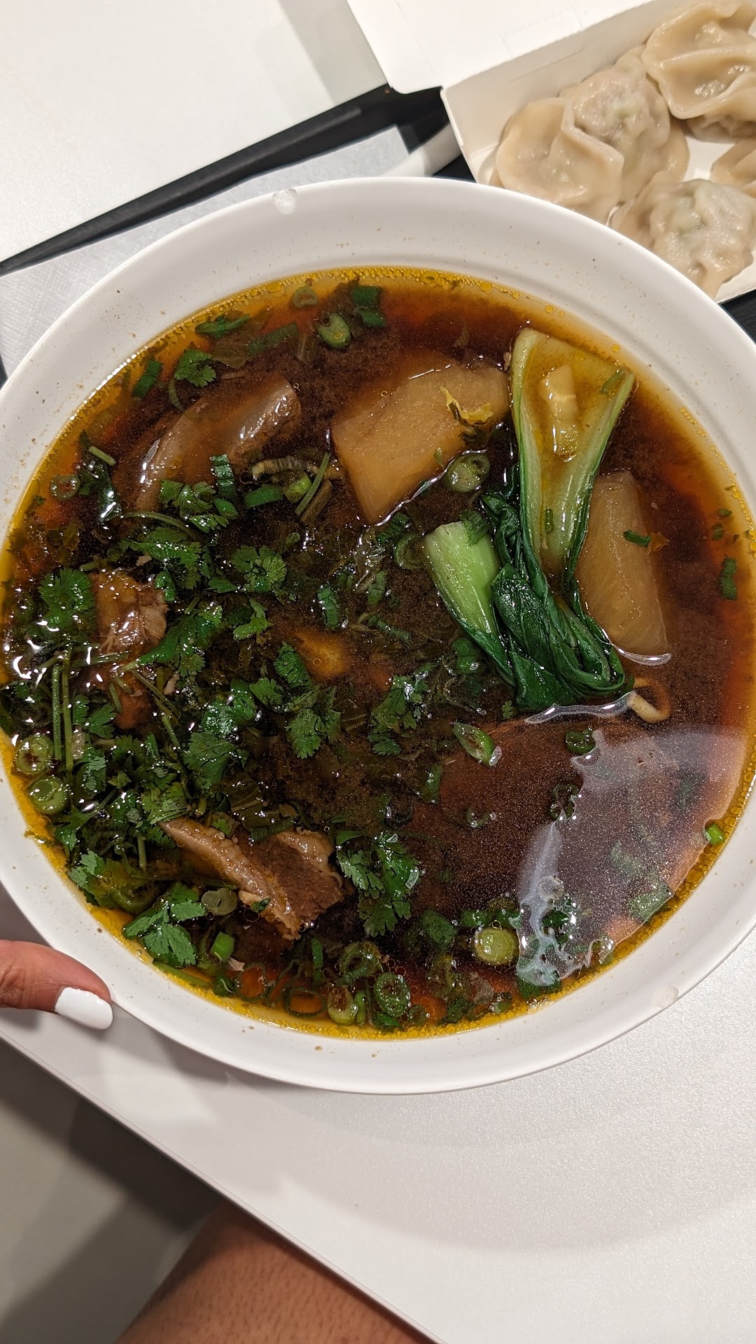 Got the Taiwanese Beef Noodle Soup - REALLY DELICIOUS. It was hot and steamy but not piping hot where you can't drink it at all. The perfect hot temperature where you can slurp it down and actually enjoy the soup. Good amount of beef in there as well and the beef was very soft and flavorful on its own too. Appreciate that there was bok choy and definitely appreciate the volume! This was a really big bowl and a good one to split between two as well and try some other options on the menu.