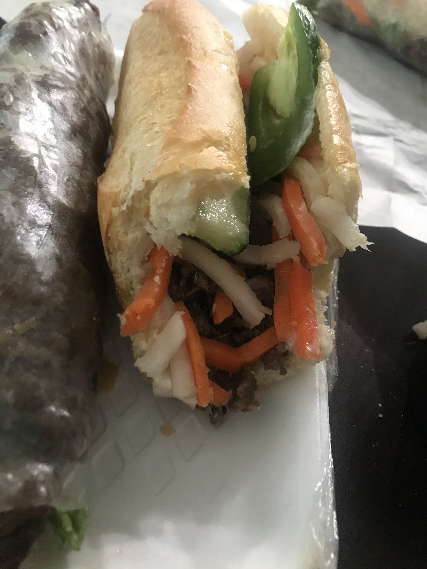 I love this place. Best banh mi sandwiches I've ever had, with the tastiest baguette bread, start at only $4 compared to as $5.79 nearby (base price). Their baguettes -- which they also sell solo at about $1.35 -- are simultaneously chewy and slightly crunchy -- a perfect contrast to its ingredients. Their "spring rolls (the rice paper kind, unfried) are great, too.