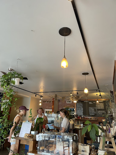 Breezy interior with modest, rustic decoration and simple benches with ample electrical outlets made for a solid work spot. It's also near a standard Mexican joint, tasty (but pricy) food truck specializing in burgers, and a Harland brewing company, among other neighborhood services.