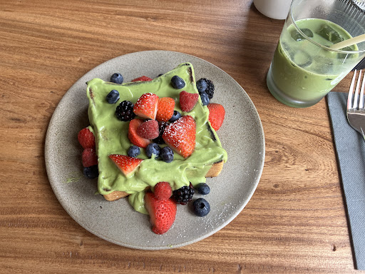 Read moreThis is one of the best brunch spots in San Diego. I got the simple toast (make it extraordinary) and it was truly extraordinary! The bread was like a thick slice of milk bread (I’d say about an inch or more thick)— the flavor of the bread was divine and the way they toast it in butter and honey only added to the flavor. Yet, still it wasn’t too sweet (I mean the Maillard on the toast was perfect). The “extraordinary” additions are a matcha cream (which is really not like a whipped cream, not sure how to describe it— it’s kind of custardy or frosting-like in terms of texture) which was amazingly light in flavor and sweetness, and some delicious seasonal berries. I highly recommend this toast, and even with the cream and the honey, it still was (amazingly) not too sweet!!!! Honestly, no notes— it was perfect! 💖💖 The prices are not that high and SO worth it! Oh, I also got their iced matcha latte, which was good. It comes lightly sweetened (and I do mean LIGHTLY sweetened)— I could hardly taste the sweetness which was perfect for me. The flavor of the matcha was good, pretty standard, but the quality was certainly there. Next time I’m really interested in trying their matcha (which I think is just the matcha, no latte,?) — it comes in a 12oz cup— just to see how it tastes on its own! Anyway, a truly remarkable experience, staff was amazing too!!!! My one caveat is that it can be a bit loud depending on where you’re seated (we were sat next to a large open window and the cars were quite loud lol, but otherwise it’s an AMAZING place and I highly...