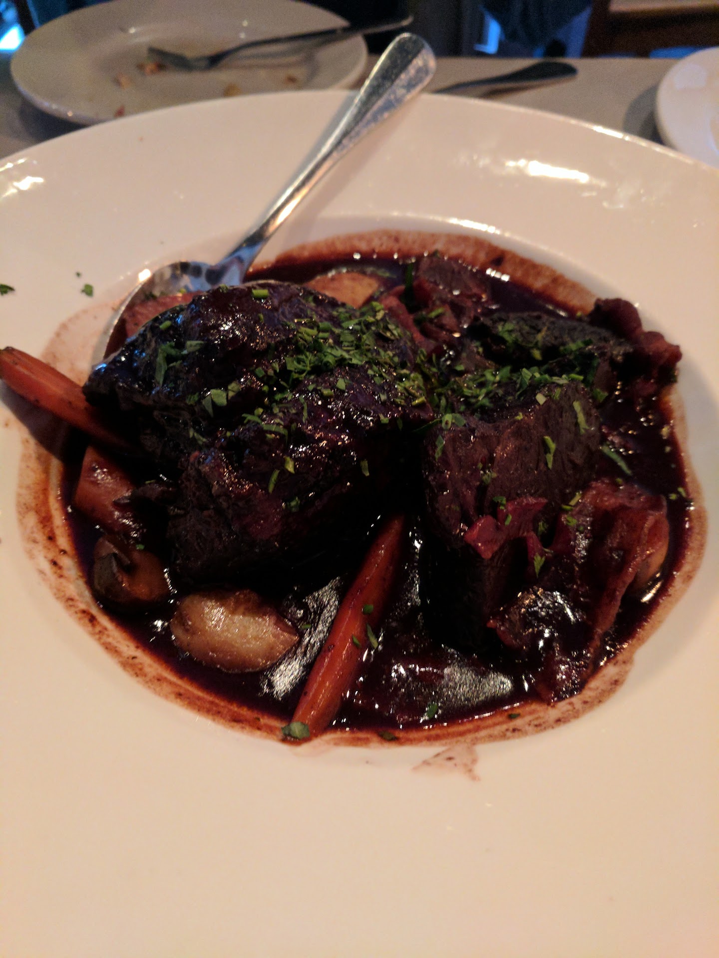About the food: we enjoyed the salad maison and gnocci à la parissienne to start. Both were very nice dishes with clear demonstration of expertise from conception to execution. The gnocchi was well balanced, but light enough to share with more than one person without being too full. Pillowy with distribution of vegetables that were a perfect pair. Our main courses were the moule frites de champignons and the boeuf bourguignon. Again, execution was high-level and a nice balance of flavors. The sauce on the bourguignon was velvety & succulent, while the moule frites were the classic pairing with plump mussels and clean, sweet, but layered broth. Pain d'Epice was forgettable. Cake was too dense and not moist. Ice cream was almost better on its own.
