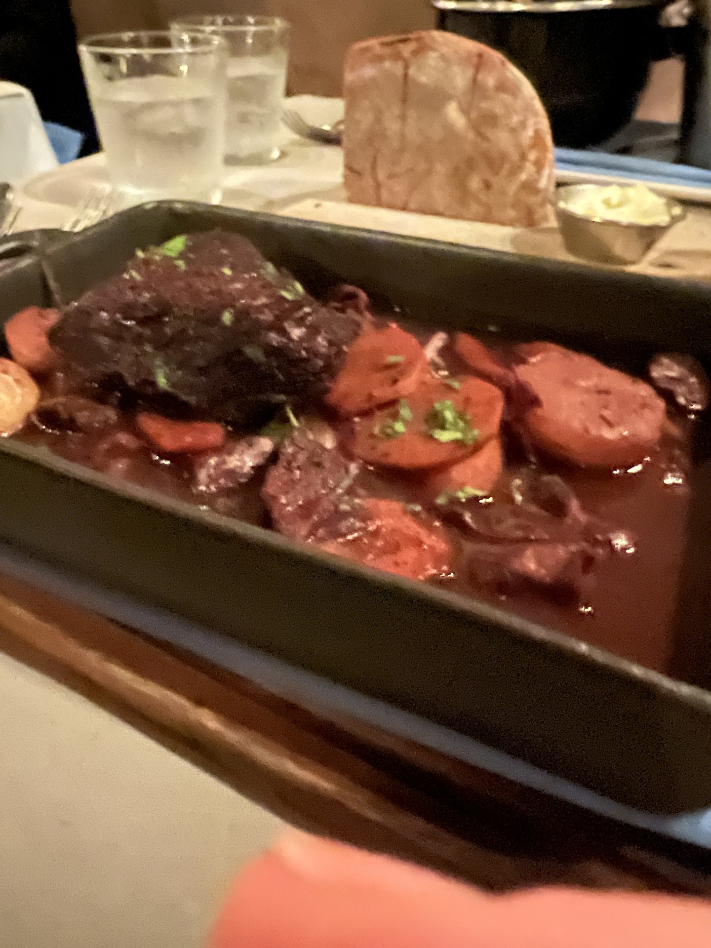 We had the escargot which was fine but needed salt. The octopus was excellent though the goat cheese was not flavorful. The beef bourguignon was a little dry but the sauce was excellent. The French onion soup was perfect. The duck confit was also a little dry. The Fruits de Mer was swimming in butter and oil and did not have much flavor but the shrimp were huge.
