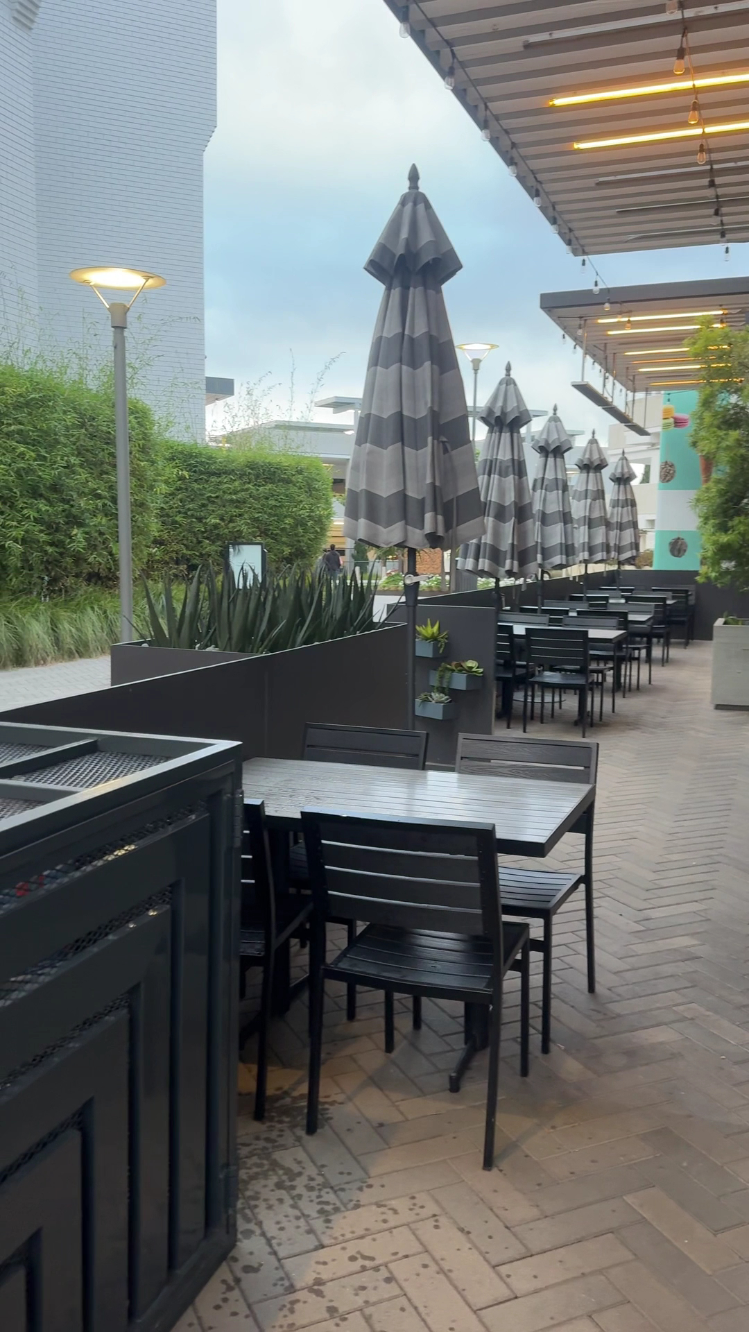 Outside: limited seating but a cozy waiting area with fire pits and heaters.