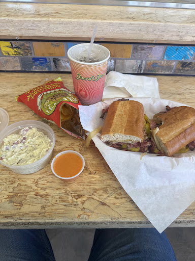 I ordered a vegi supreme sandwich with a side of potato salad, and both items I ordered were delicious! However, I didnāt know that I needed to pick up my container of potato salad in the fridge next to the counter when I was ordering; which explains why I was confused as to why the staff did not bring it out at the same time they brought my sandwich. The sandwich was a bit messy to eat as well. I could only eat my first half in the restaurant before attempting to take the rest home for leftovers (I donāt like to waste food); which I greatly appreciate them providing to-go bags for easy access for customers. However, after sitting in my purse during a 6-hour long car ride home; the leftovers werenāt fresh anymore and I had to throw them away.