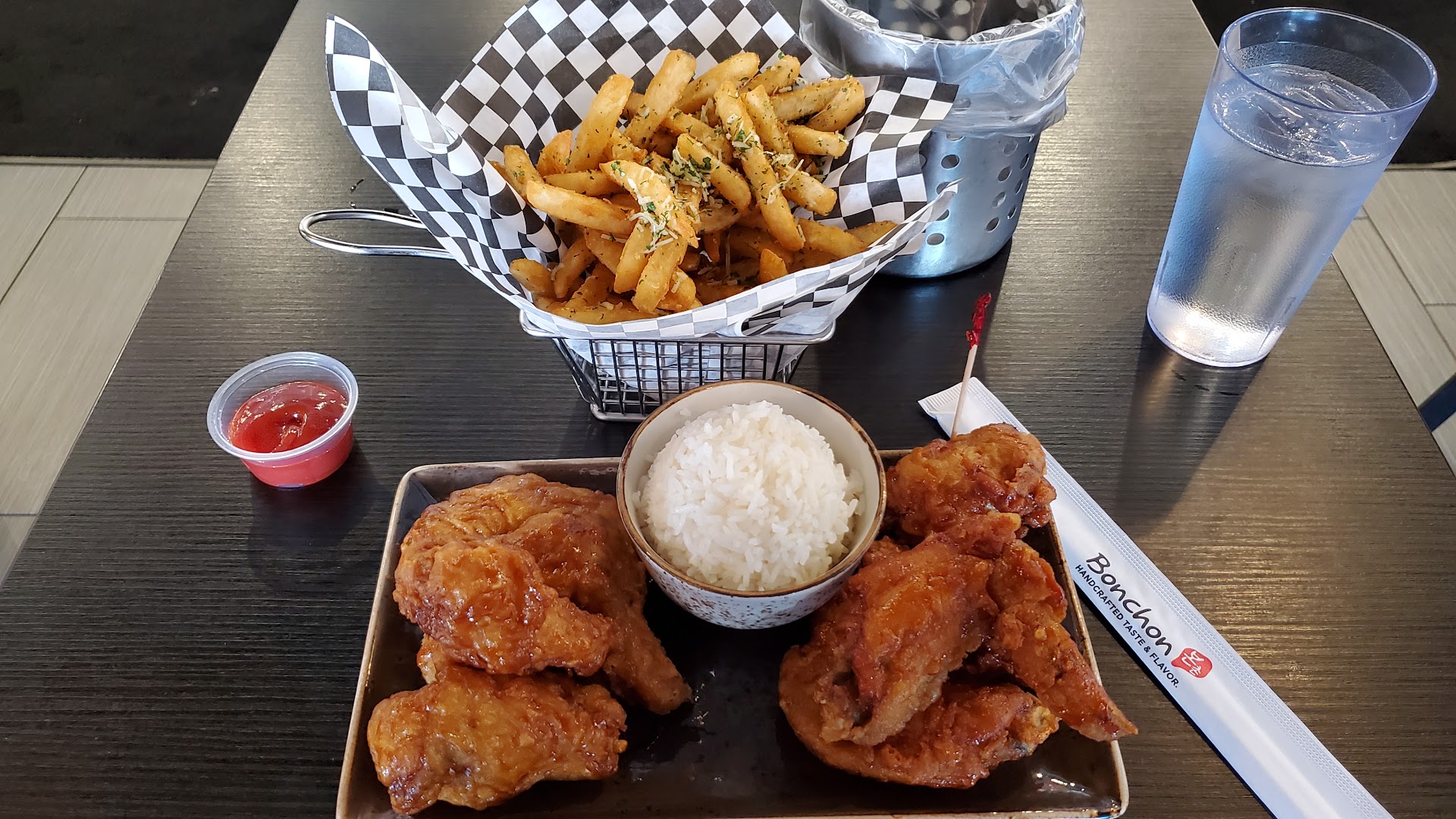 Bonchon had no sauce dripping anywhere at all. Had to get the food to go as I didn't want to be there anymore because the food was disappointing.