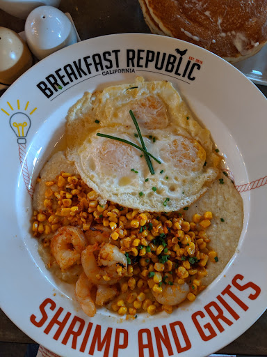 Read moreI'm so disappointed in my visit today. I'm still sitting at my table as I write this. I came in for a late working lunch, and there was no wait, which was great. However, that was the only good thing about my experience today. It appears that there was only 1 server/ bartender on duty. So she was doing all the work. There were about 7 tables (that I saw ), and most of them had already started eating, or they were cashing out. I ordered shrimp n grits and the jarrassic bacon, two of my favorites! I chose breakfast republic today for those items. I waited for almost 10 mins to place my drink order and made sure to order all my food at the same time since it looked like she was not going to come back any time soon. Every time I've been here, the wait for the food tends to be a bit longer, which is fine because it has always come out delicious. My bacon came out CLEARLY BURNT. Why would you do that?? AND my poached eggs were not drained before they put them on my plate, so the grits were swimming in egg water. I had to use my one napkin to drain what I could off of it. One of the eggs was busted open, and they didn't look like they were cooked properly. (These are my favorite way to eat and cook eggs, so i am familiar with how they are SUPPOSED to look when cooked properly. ) The grits were not cooked all the way either. I'm so hungry that I just ate them because my server was nowhere to be found. I asked for more napkins, and I never got them. She also forgot my straw. She said she'd have new bacon br brought out, but that wasn't the case either. What a disappointment. In all fairness,she did comp my burnt bacon and my drink, but it would've been better to get good service and food. She also had her young kids there helping grab utensils for guests and what not. That's kinda gross. When was the last time they washed their hands???