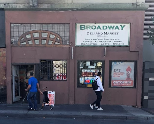 The Broadway Deli & Market - from my observations - has been around for quite a long time : Meanwhile encroachment from San Diego's East Side and Gas Lamp quarter developments are slowly creeping eastward - like ice plant (a weed like creeping plant that has been devastating parts of Tecolote Canyon Park) wending their way up Broadway : Part of the south block of Broadway - that starts around east 8th Street - has been boarded down and locked up, in preparation for eventual demolition. Their are a small remaining group of "homeless street people," who are hunkered in along the west side of 9th street. The Broadway Deli & Market is one of the few last remaining small businesses within this area, besides a couple of local bars, pizza shops and a"gentleman's clothing shop" along Broadway, thru 10th street The owner -"an older man, named Sam" is a quiet, easy going fellow : He knows many of the local residents and homeless people personally and gives a few of them "a small store credit account," which is something that one rarely ever sees anymore, except in small town rural America. A few of the people whom he helps have low paying jobs, are on various types of government assistance, or are homeless however, sometimes able to find some kind of work. It's quite sad to know that there are so many people within our country - especially children - who go to bed hungry every night. You don't find to many people like Sam in our world today. His store sells sandwiches, coffee and cappuccinos, cigarettes, soft drinks and lots of different kinds of ice creme products. He also sells lotto tickets and I occasionally buy a few tickets from him, whenever I decide to buy any tickets. I don't buy very many however, I figure that if I do ever win, that some of my winnings would go to him and most of the rest to various charities ; at my age, there isn't that much time left and throwing it all away on a too many material objects seem so senseless. A person may think that they want a lot of things, yet when it comes right down to what you really need, if you see the "light," He will guide you. The building looks like it was built during the 1930's, so it's been there a very long time. It's kind of funny, to see all of these "glass townhomes/apartments" being built everywhere yet, most of them all look alike...remind's me of a book that I read a few times, during my generation. I think think that the book's title is either "1984," "Brave New World," or The Illuminati?" It kinda` makes a person wonder, doesn't it?🌇🚘🌈 like "Brave New World," or "THX1138" (I don't know if I got the title of the...